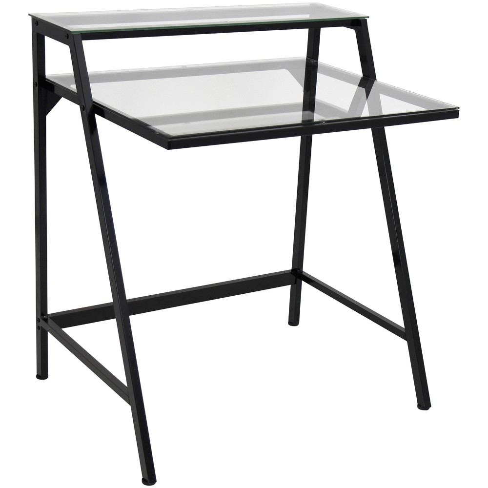 traighten out your workspace while remaining stylish. The 2-Tier Desk is the perfect solution to a clutter-free workspace, with an additional shelf for storage and stylish metal legs supporting a chic glass top. This piece is sure to impress in either of its two color choices.