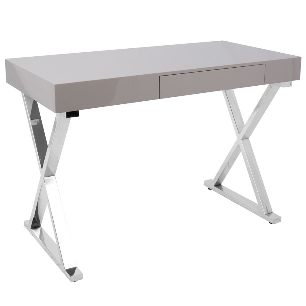 Add glamour to your workspace with the beautiful gloss finish of the Luster desk. A thick white base and pullout drawer provide an optimal workspace, while supporting chrome-finished X-shaped legs add a truly stylish appeal.