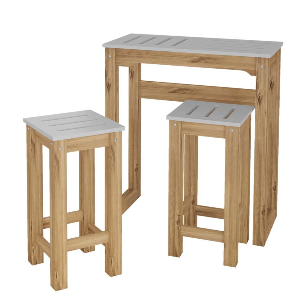 The Stillwell bar dining set is cool, sophisticated, and the perfect blend of Mid-Century craftsmanship and versatile design. Functional and stylish, the table is just right in a condo or more compact space, offering a space designated for dining without overtaking the room. Airy, seamless, with a smooth silhouette, the table works well for breakfast or in the dining room. Wherever you place it, it will blend with any existing furniture and instantly take your decor up a notch. Includes 2 matching barstools.