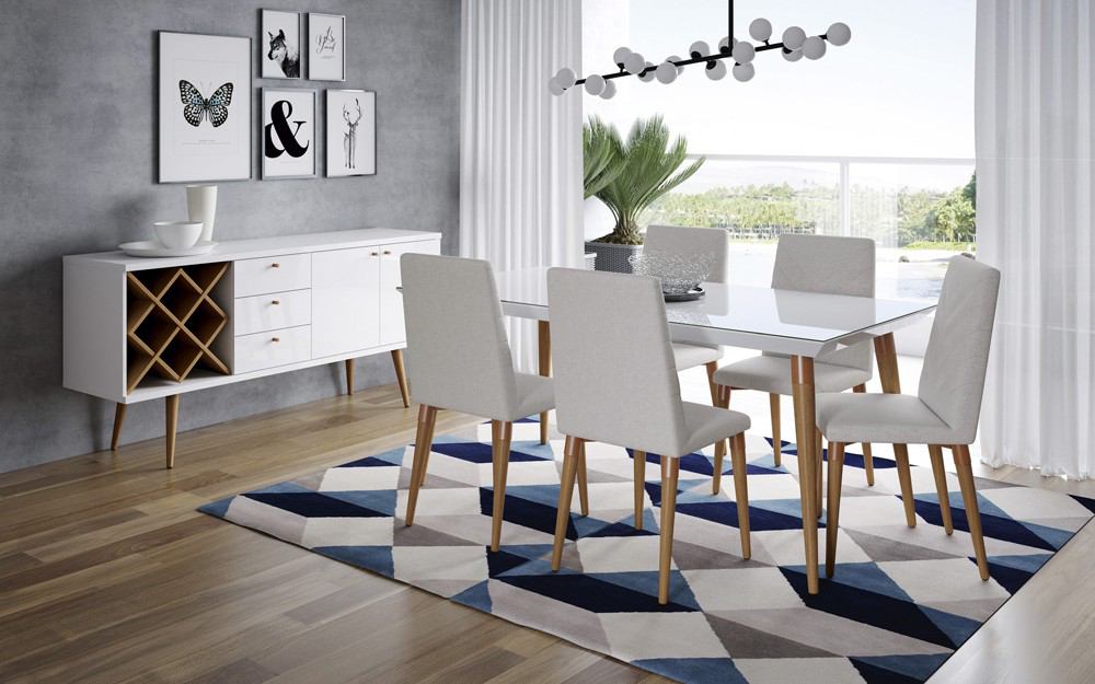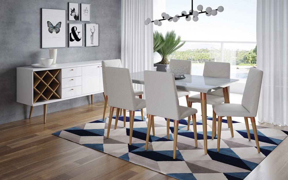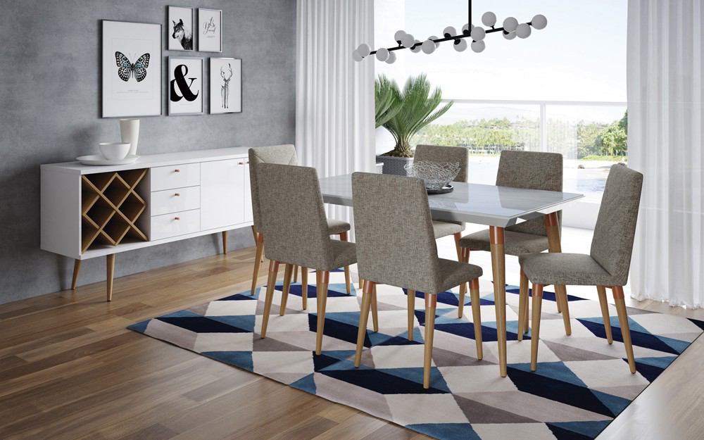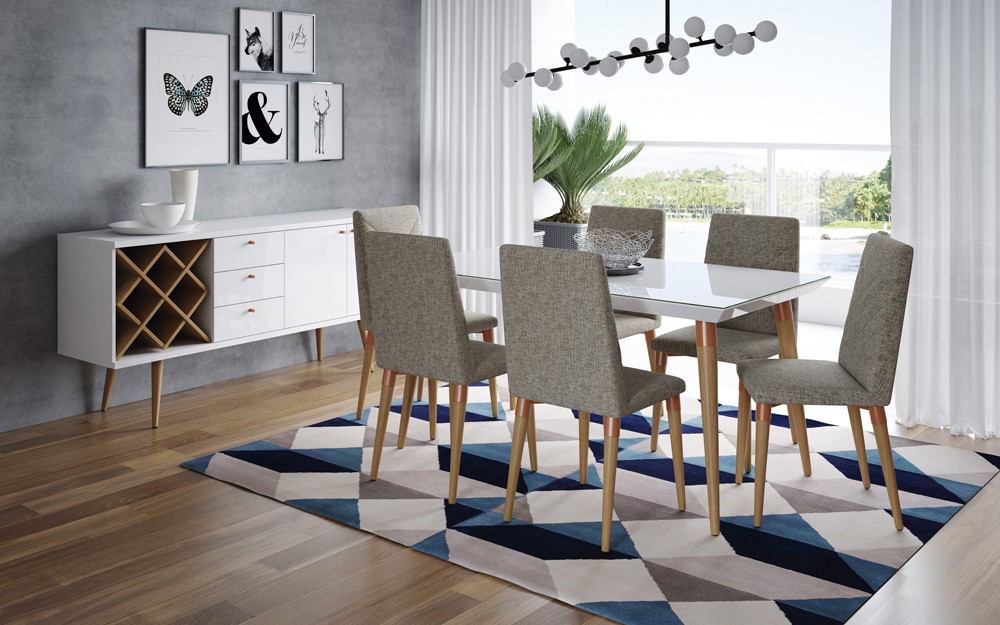 Manhattan Comfort 7-Piece Utopia 62.99" Dining Set with 6 Dining Chairs