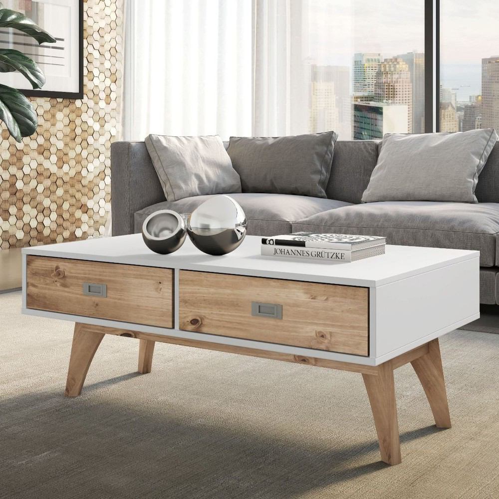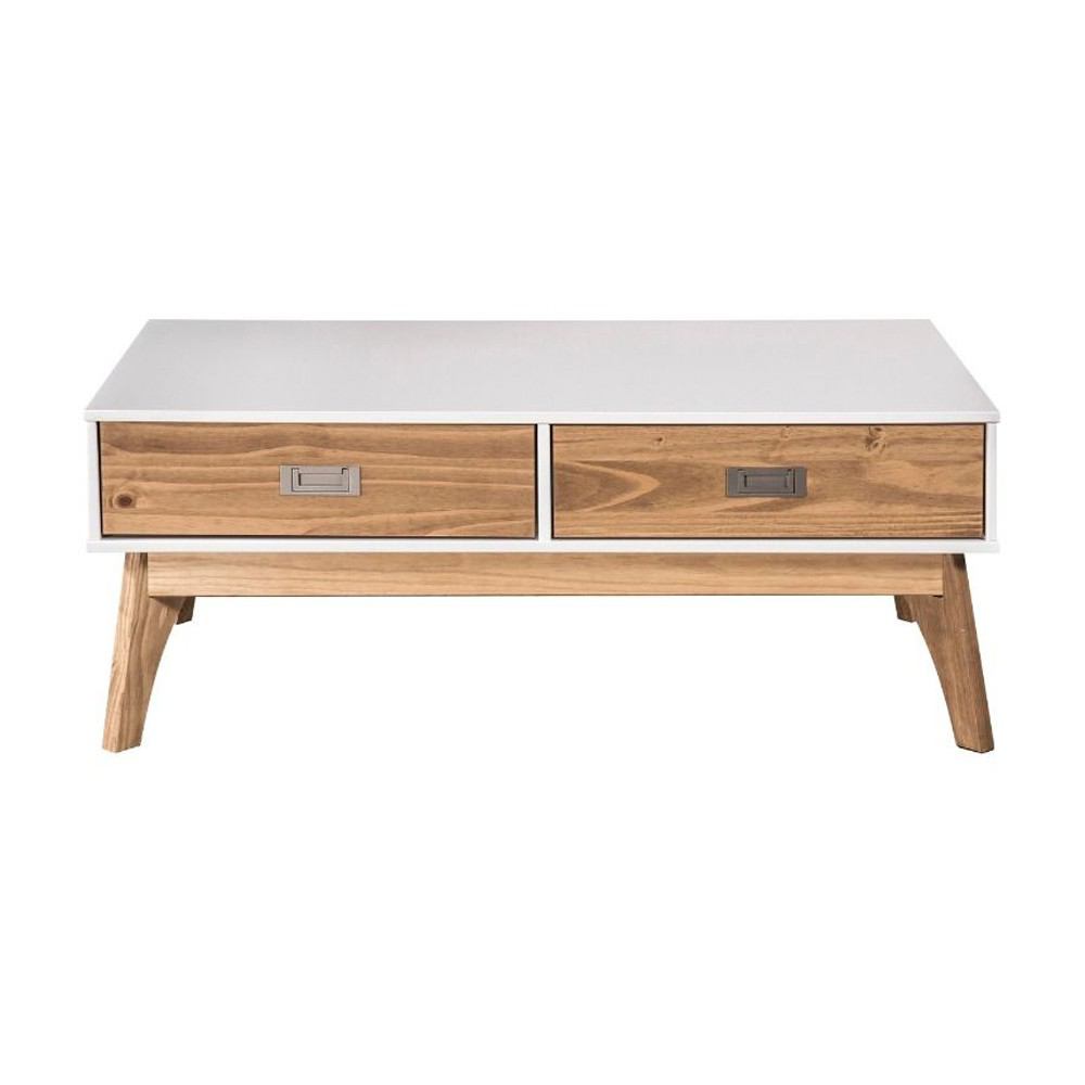 Mid-Century design at its best, the Jackie 1.0 coffee table offers storage, design, and great style. Featuring two drawers, slightly splayed legs, and built from natural pine, this piece easily allows you to stow away your books, magazines, remotes, family photo albums, to enjoy and never to be misplaced. Display a decorative vase on its smooth finish, favorite coffee table books, or an artful tray and warm scented candle. A coffee table often draws people into your living space, and this one will create the perfect atmosphere.