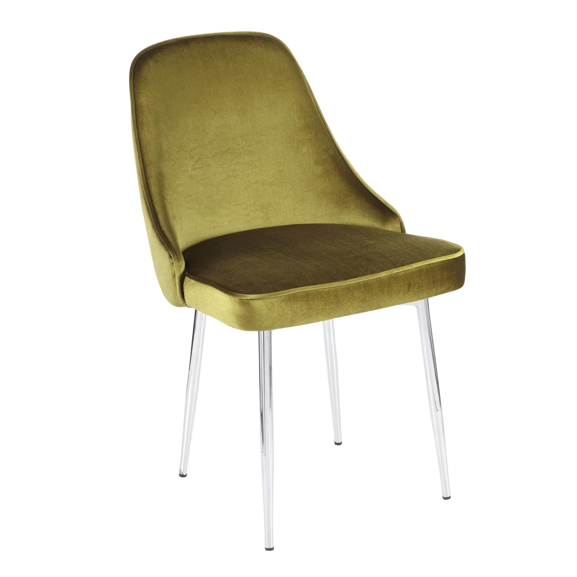 Graceful glamƒ?? that's the Marcel Dining Chair from LumiSource. With its subtly curved silhouette, rich velvet upholstery, and alluring metal legs, this chair will add striking style to any dining or seating area. Available in various fabric and leg options. Sold in a set of two.