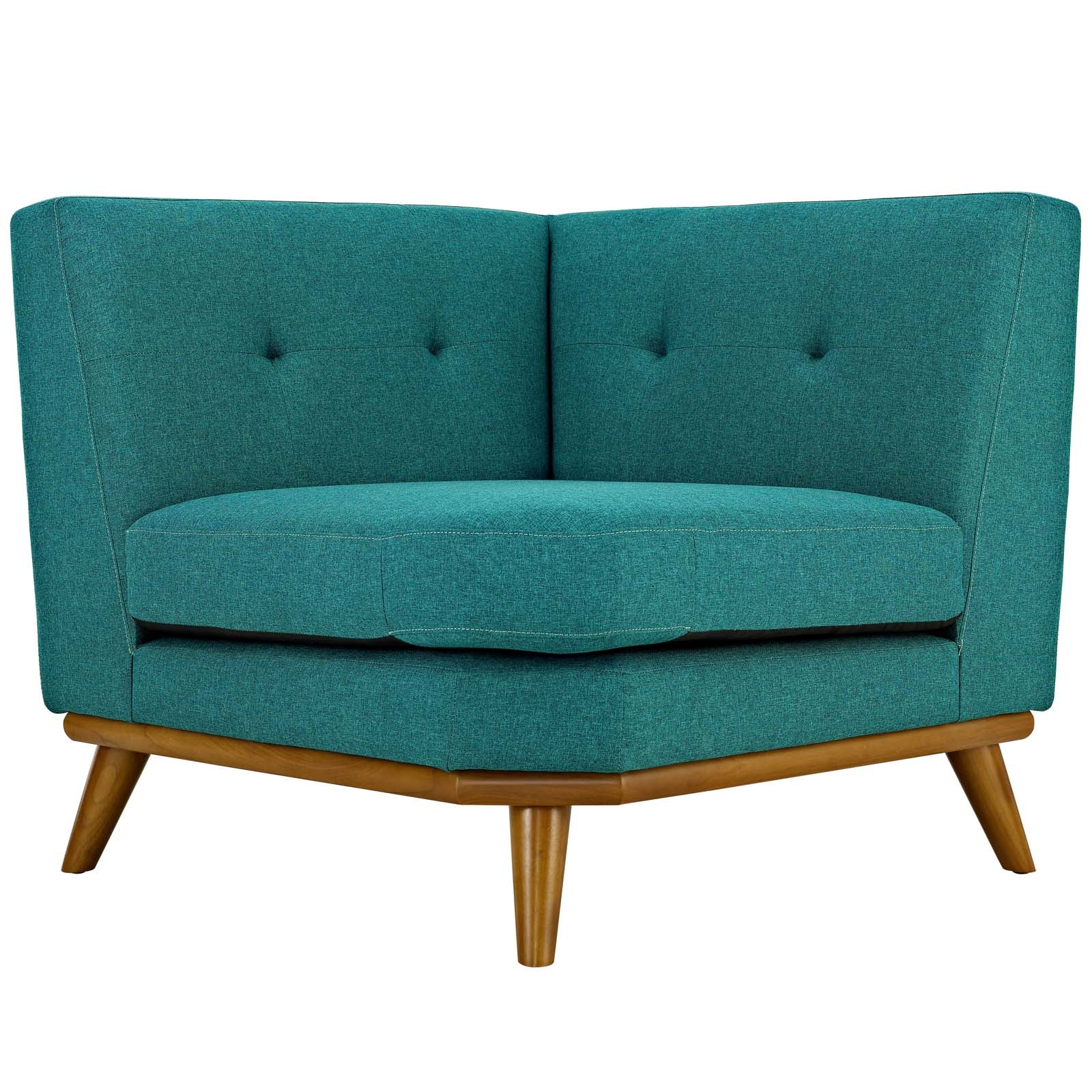 Gently sloping curves and plush cushions create a favorite lounging spot. Whether relaxing after a long day at work, settling in with coffee and brunch, or entering a spirited discussion with friends, the Engage corner piece is a welcome presence in your home. Four tufted buttons create eye-catching appeal, adding depth that brings your seating décor to center stage. Rubberwood legs and frame supply a solid base to this quality upholstered fabric piece. Set Includes: One - Engage Sectional Sofa Set