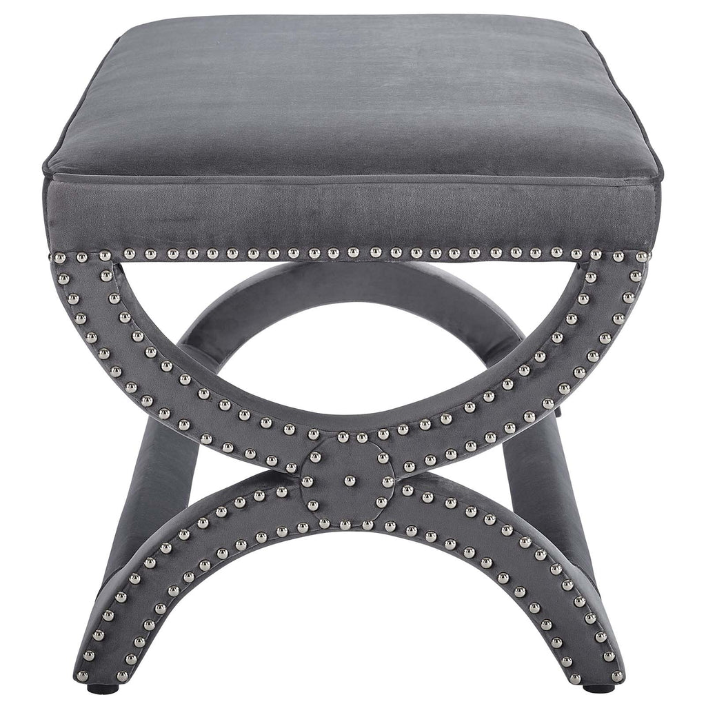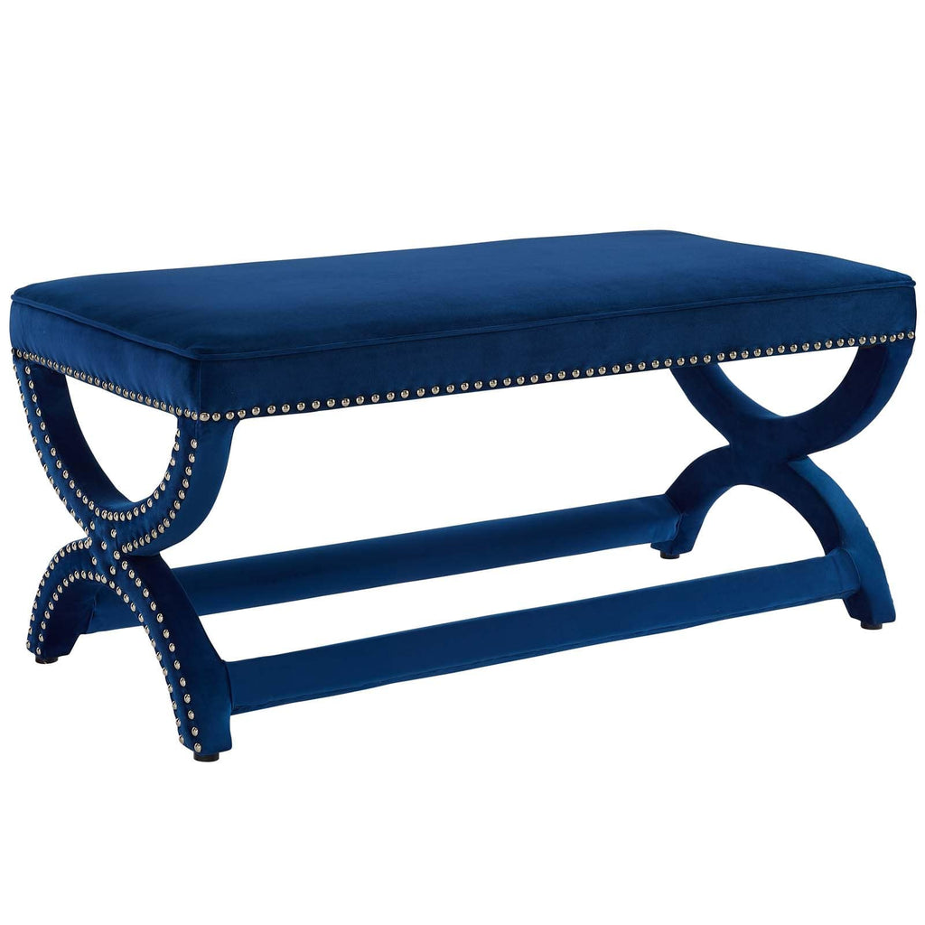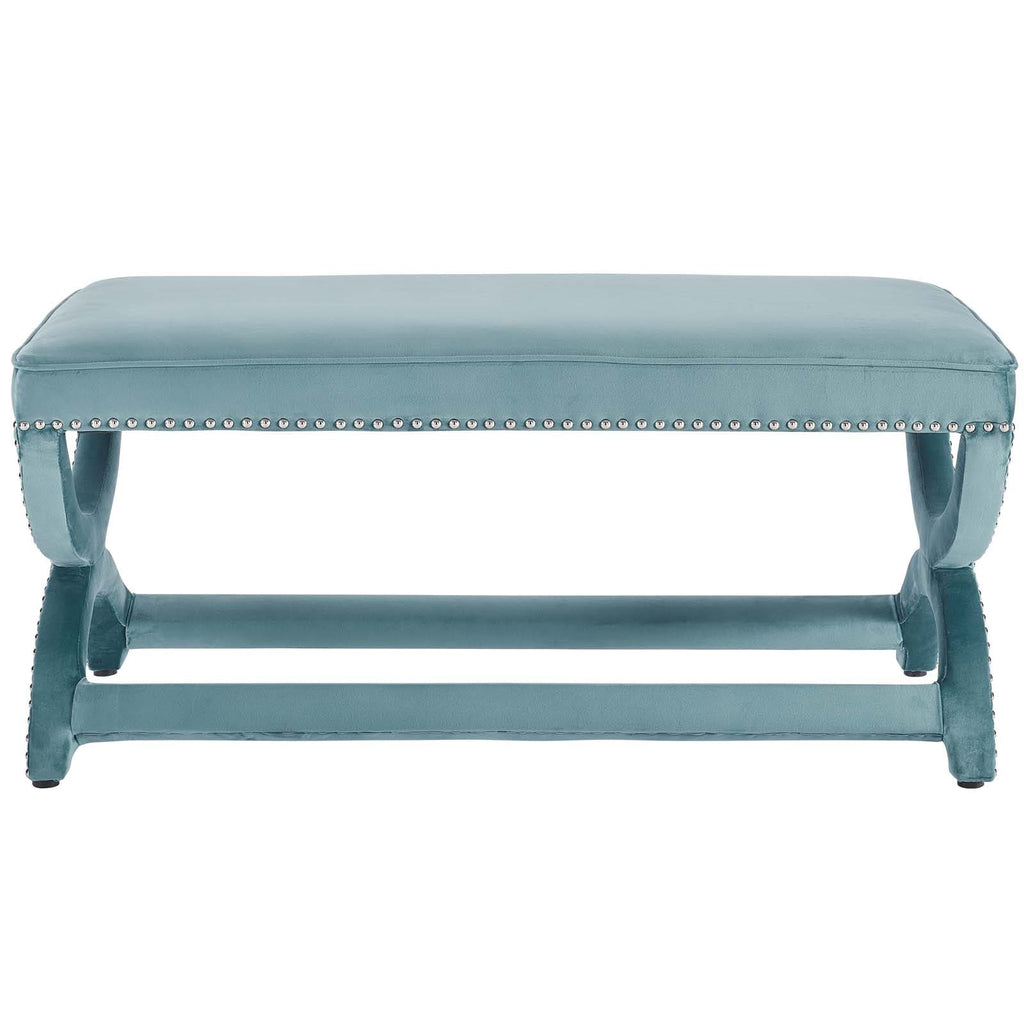 Add instant charm to your home or apartment with the Expound Bench. Bringing visual appeal to a functional seat, Expound sits atop elegantly curved legs with chic linear stretchers, while timeless nailhead buttons delicately line the sweeping frame. A perfectly soft and cozy bench for the chic modern lifestyle, Expound is upholstered with stain-resistant velvet polyester and features dense foam padding for ultimate comfort. Expound is available in a variety of engaging colors and is the perfect addition to bed, living, and lounge rooms, and has a weight capacity of 331 lbs. Comes fully assembled. Set Includes: One - Expound Bench