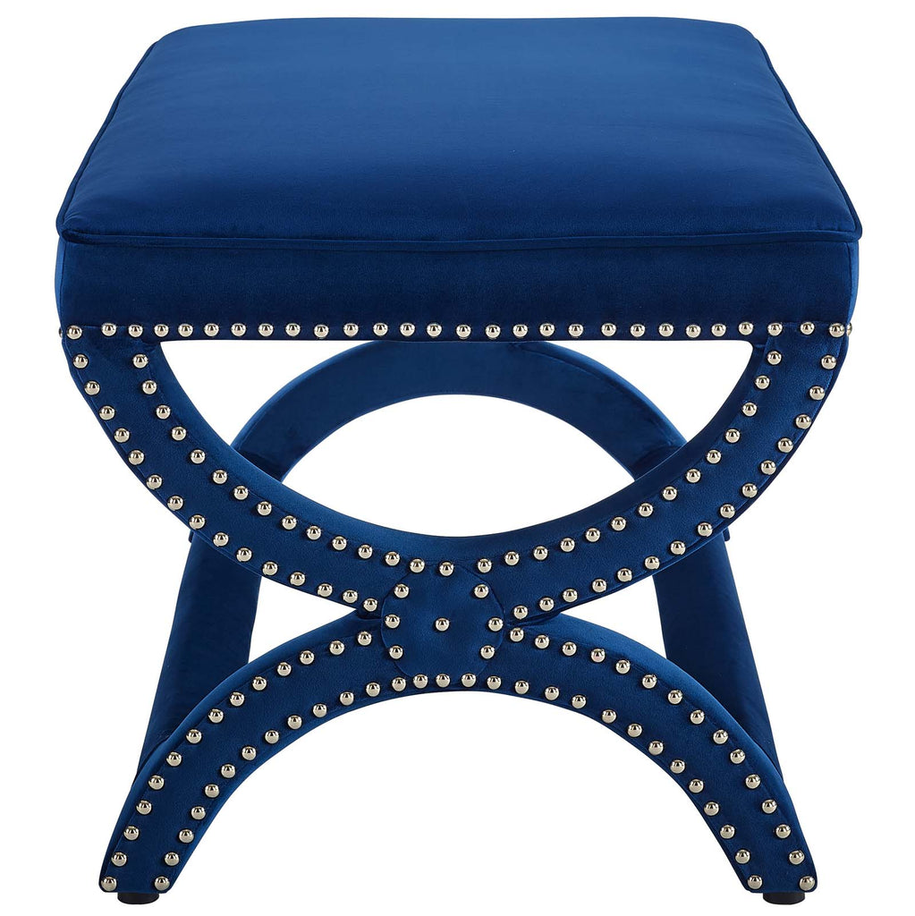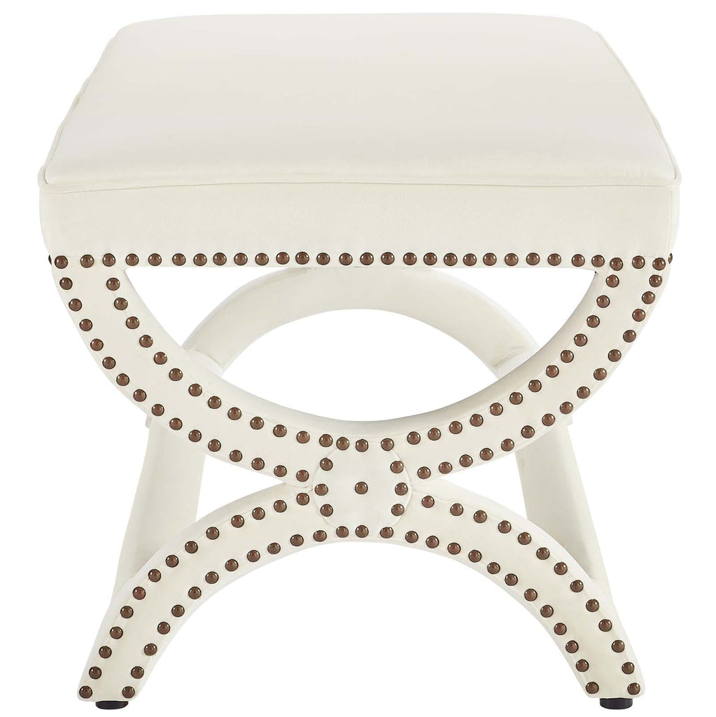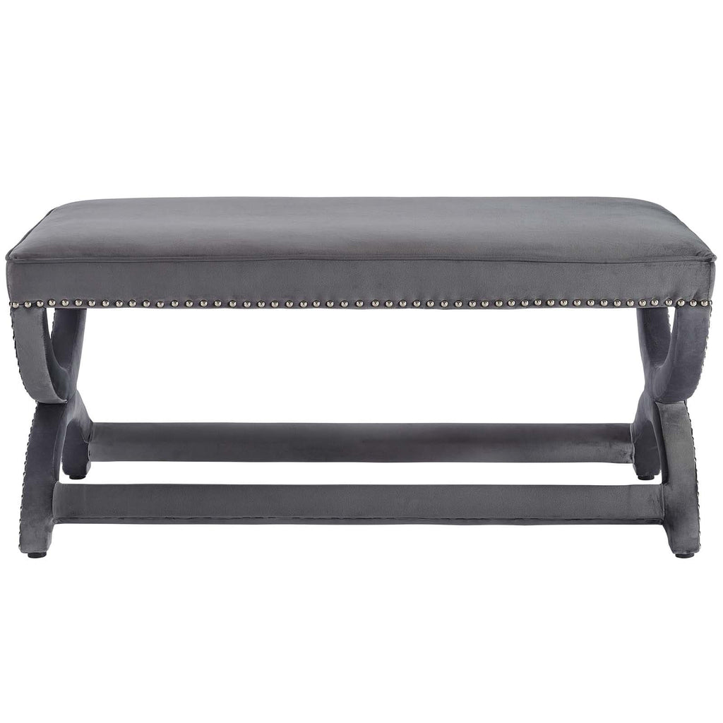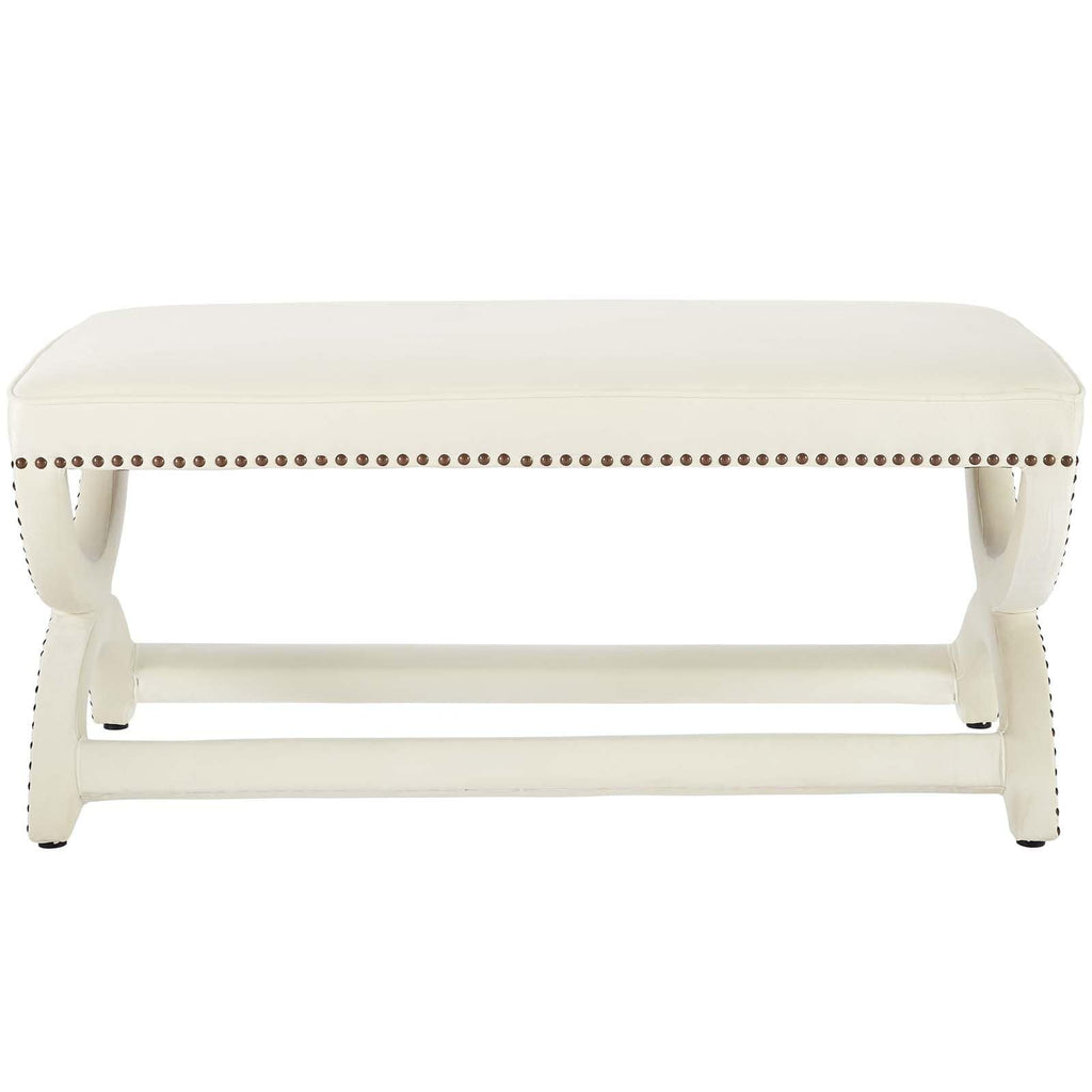Contemporary Modern Bench Stain-Resistant Velvet Silver or Brass (Ivory) Nailhead Dense Foam Cushioning Non-Marking Plastic Foot Caps Comes Fully Assembled Bench Weight Capacity: 331 lbs.