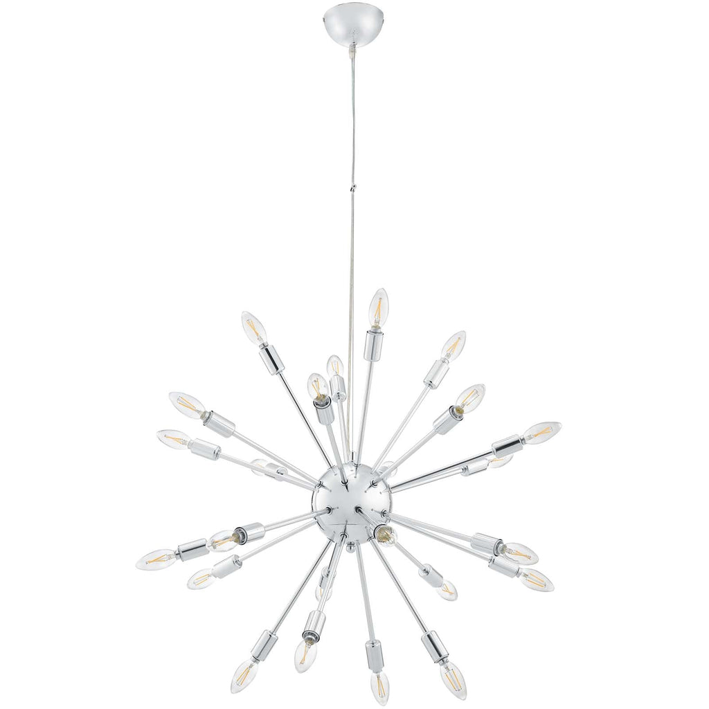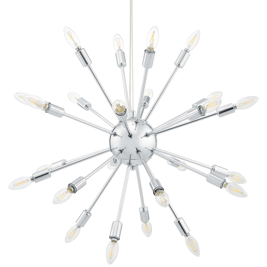 Center your focus with a blaze of light designed to illuminate spacious rooms and event areas. Whether you create a festive atmosphere with colorful or classic white bulbs, Gamut brightens every corner in this contemporary chandelier brimming with endless possibilities. The chrome-plated steel base lends additional shine and sparkle to this eye-catching ceiling fixture. Cord adjusts from 23.5” to 31.5”. Set Includes: One - Gamut Chandelier