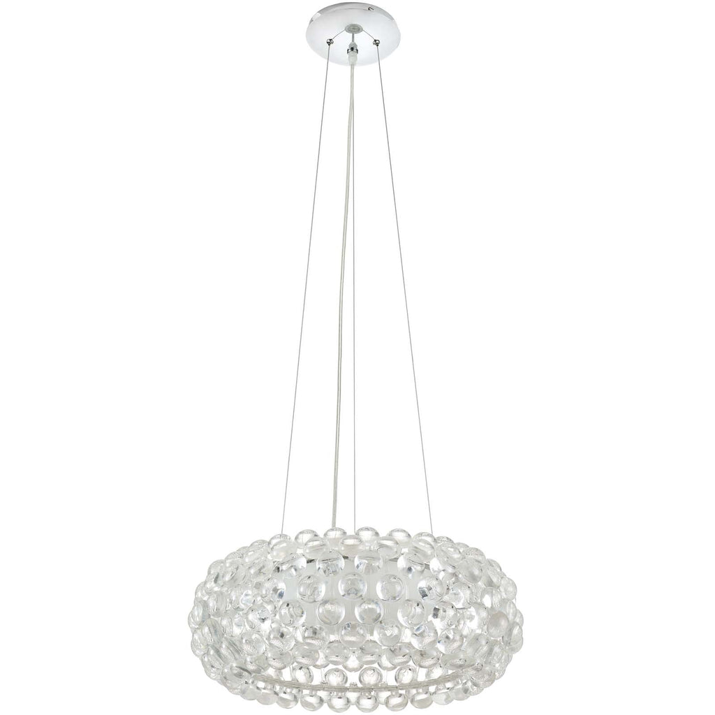 The circle of revolution displayed by the Halo Series introduces spontaneous brilliance that reflects powerfully throughout any room. Complete with acrylic balls, a chrome-plated steel frame, and a white glass lampshade, the Halo 20” Pendant Chandelier fits two E26 60W bulbs (not included) and comes with a 39” adjustable wire cord. Set Includes: One - Halo 20” Pendant Chandelier