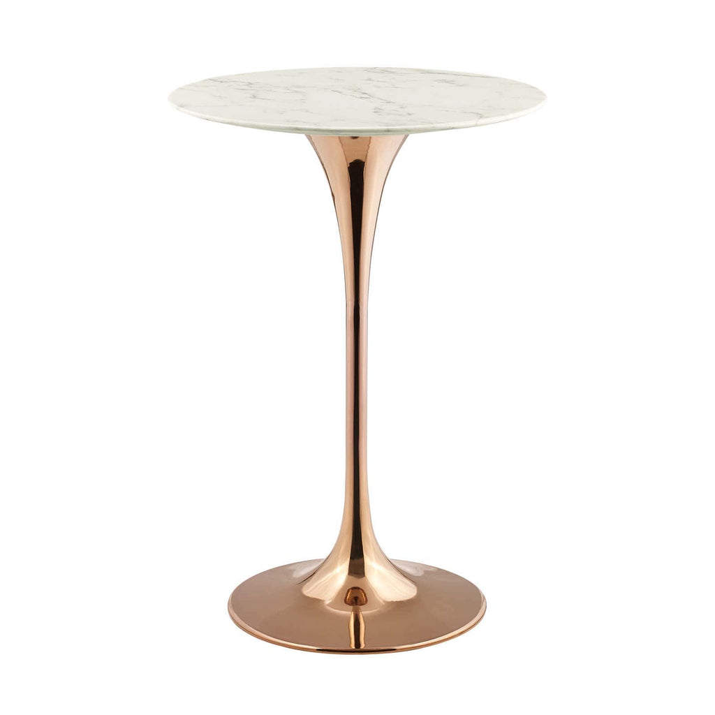 Reflecting a seamless organic shape and timeless form, the Lippa Table has become a symbol of modernism for over the past 60 years. Before its release, homes were filled with clunky remnants of an industrial age long gone by. But in order to advance into the new world, homes first had to transition from the traditional square table, into a piece that connoted progress. The base and dimensions are true to the original specifications, while the table’s circular marble top, and tapered metal base, are carefully lacquered with a durable finish. Set Includes: One - Lippa 28" Bar Table