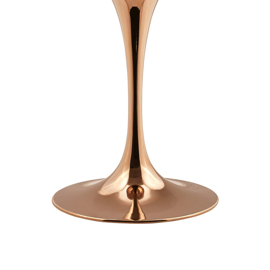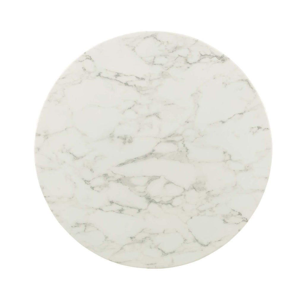 Reflecting a seamless organic shape and timeless form, the Lippa dining table has become a symbol of modernism for over the past 60 years. Before its release, homes were filled with clunky remnants of an industrial age long gone by. But in order to advance into the new world, homes first had to transition from the traditional square table, into a piece that connoted progress. The base and dimensions are true to the original specifications, while the table’s circular artificial marble top, and tapered metal base, are carefully lacquered with a durable finish. Set Includes: One - Lippa 36" Round Dining Table