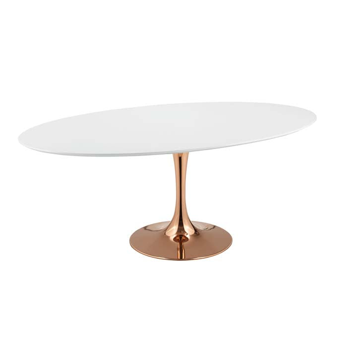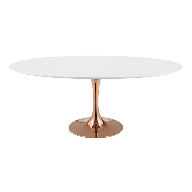 Reflecting a seamless organic shape and timeless form, the Lippa Table has become a symbol of modernism for over the past 60 years. Before its release, homes were filled with clunky remnants of an industrial age long gone by. But in order to advance into the new world, homes first had to transition from the traditional square table, into a piece that connoted progress. The base and dimensions are true to the original specifications, while the table’s circular top and tapered base are carefully lacquered with a smooth, sleek finish. Set Includes: One - Lippa 78" Oval Dining Table