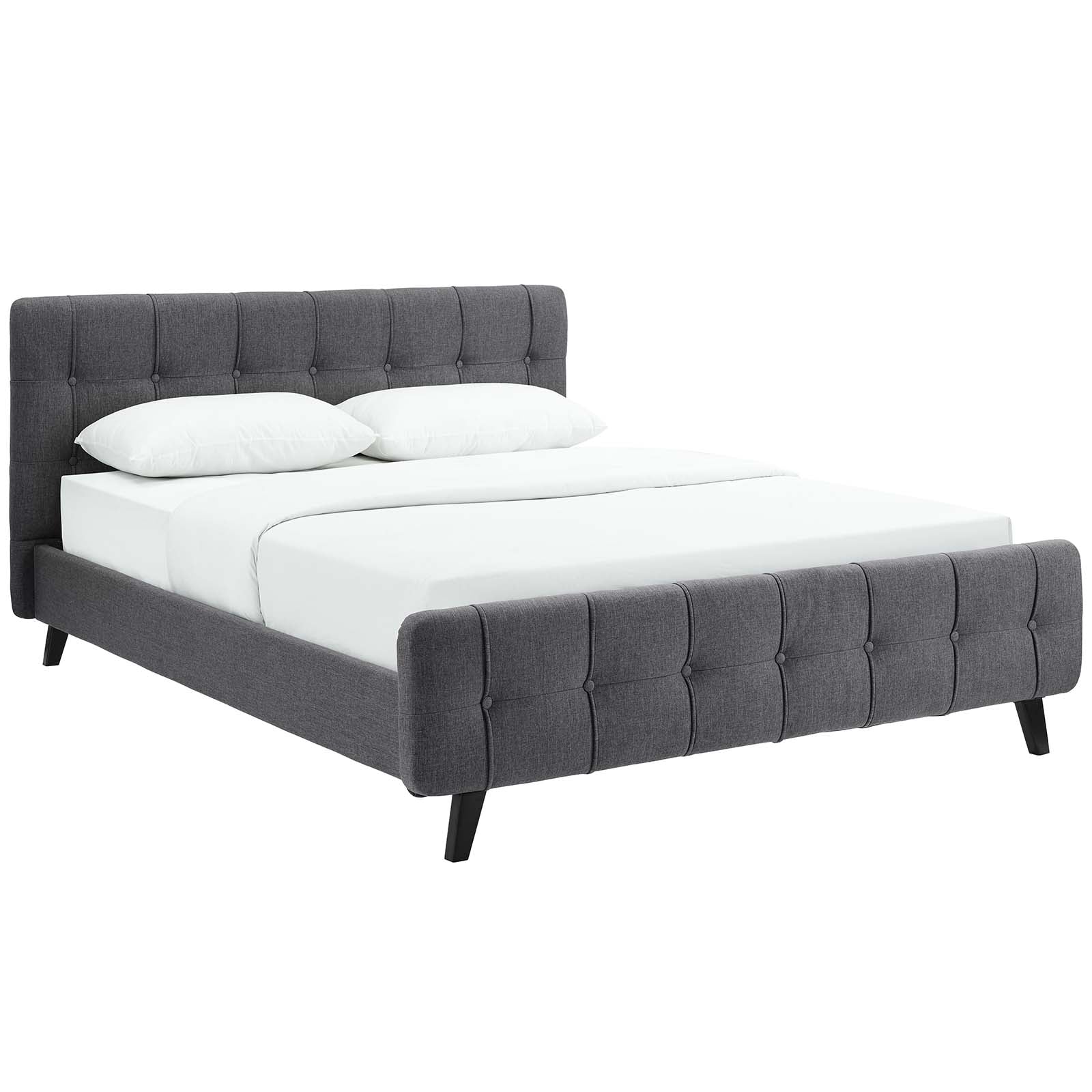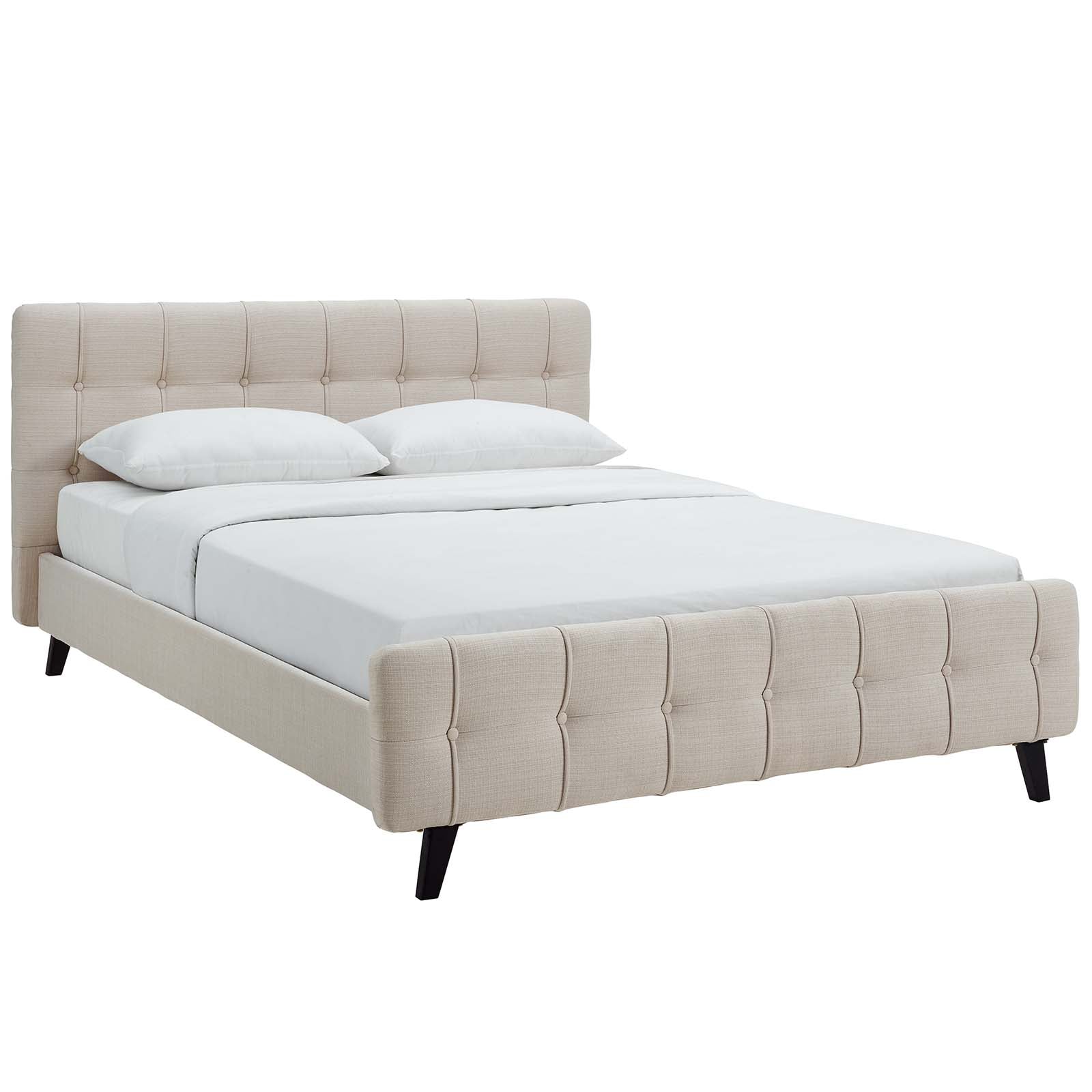 Restyle your bedroom décor with the Ophelia Platform Bed. Designed with luxury chic button tufted headboard and footboard, Ophelia comes upholstered in polyester featuring elegant trimming, black stained wood legs, and a slatted wood support system that eliminates the need for a box spring. Complete with a reinforced center beam with supporting legs for maximum stability, the Ophelia integrated bed frame accommodates the various mattress types on the market such as memory foam, spring, latex, and hybrid. A modern centerpiece to your bedroom, Ophelia is a quality modern bed poised to thoroughly transform your space. Weight capacity up to 1300 lbs. Mattress Not Included. Set Includes: One - Ophelia Queen Bed