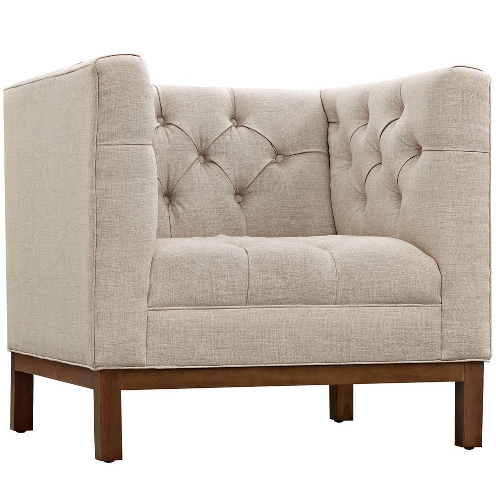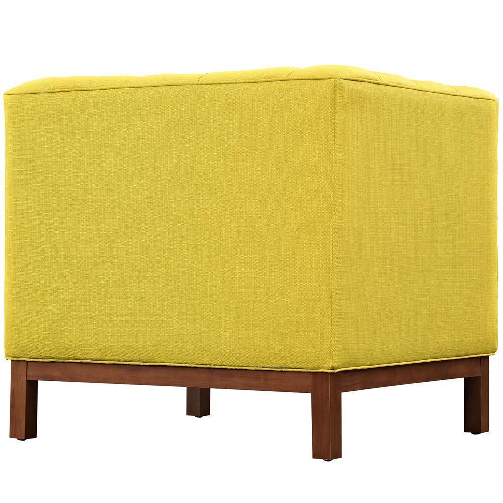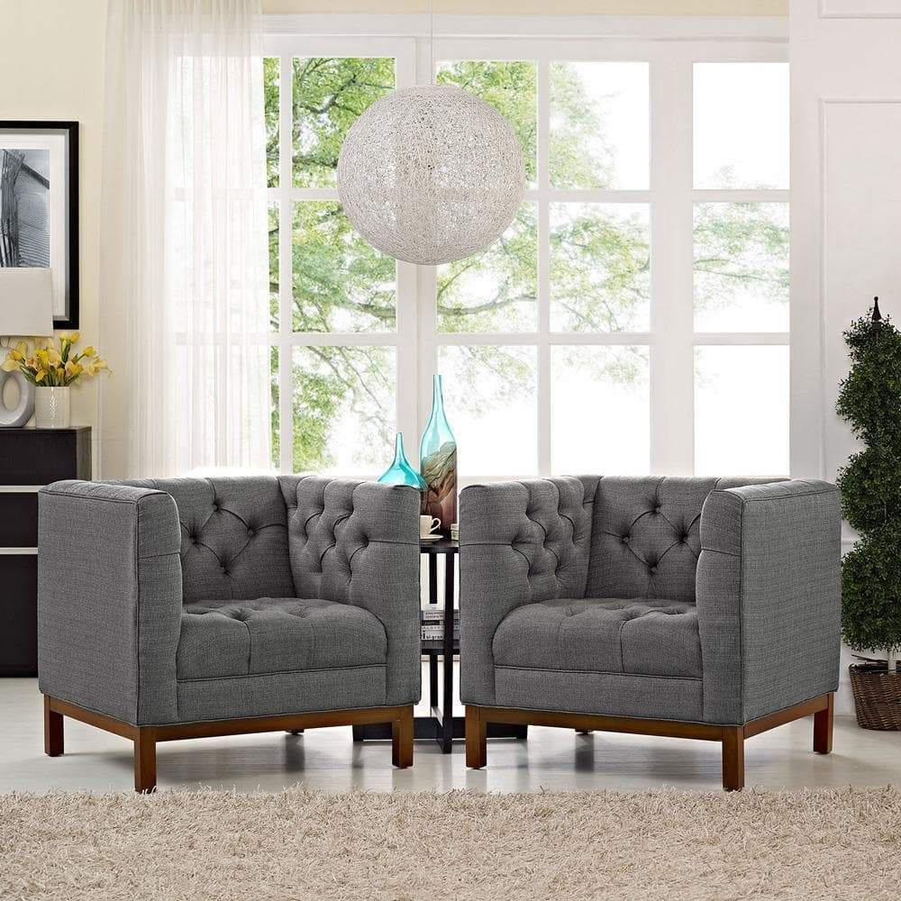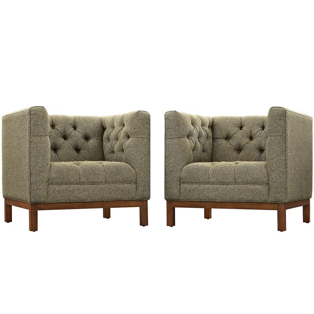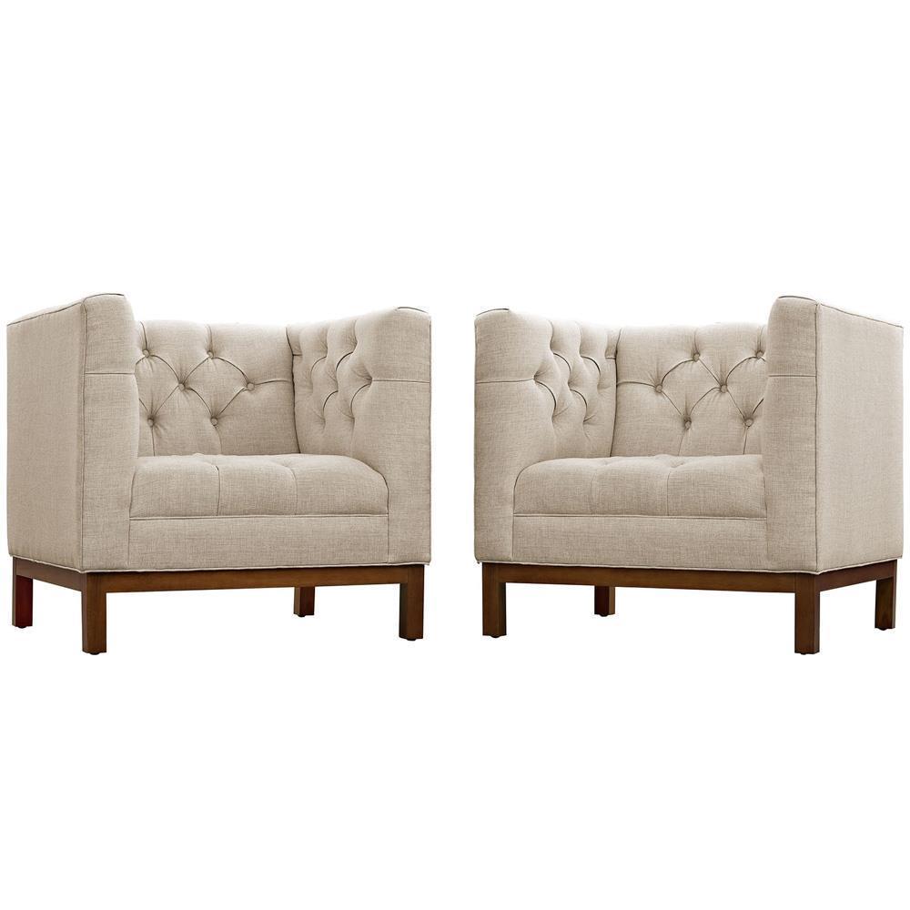 Add vivacity to your décor with the Panache Collection. Designed to express elegance and comfort, Panache comes outfitted with deeply tufted buttons and plush cushions for a timeless charm. Constructed with solid wood legs, fine fabric upholstering, and a reinvented mid-century style design with a dash of vintage charm, enhance your living room, lounge or meeting area with the Panache Collection. Set Includes: Two - Panache Fabric Armchair