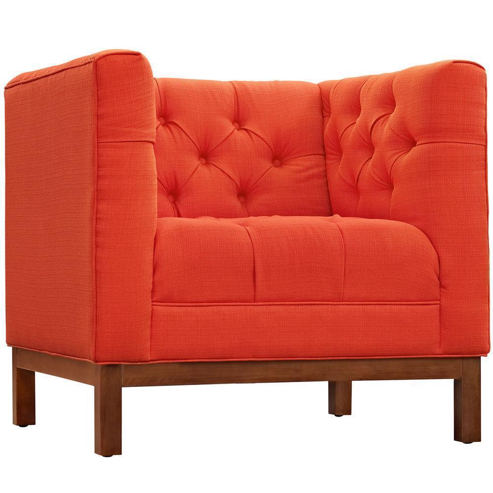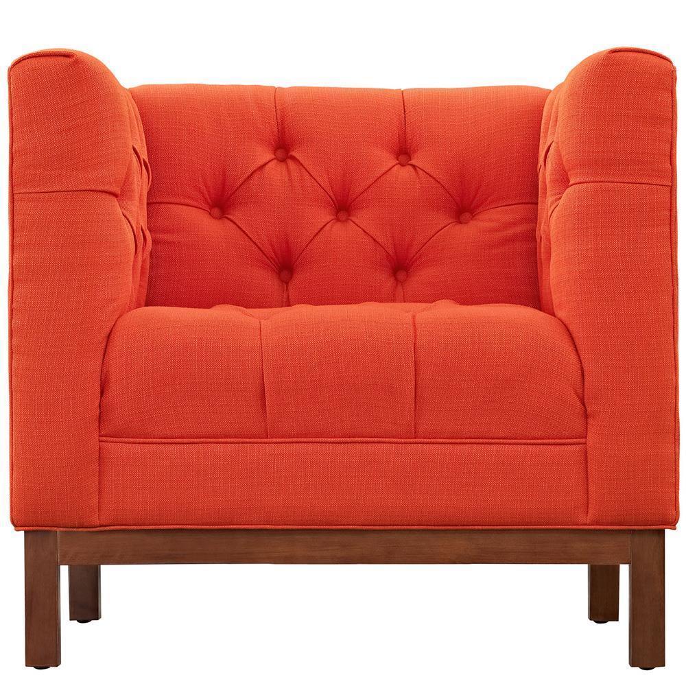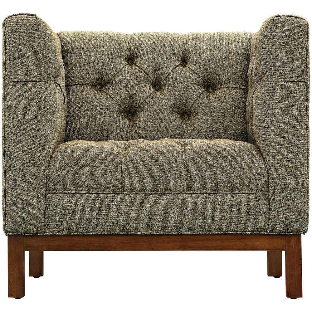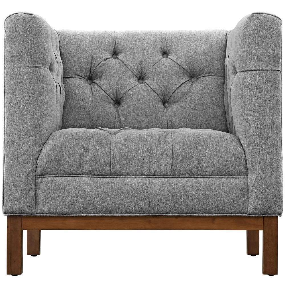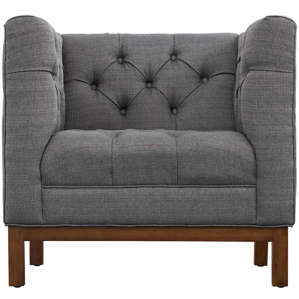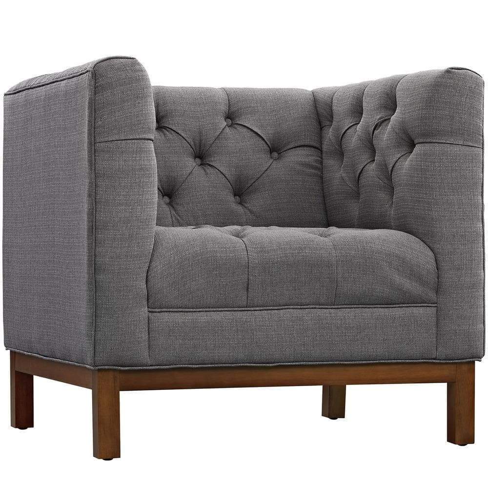 Add vivacity to your décor with the Panache Collection. Designed to express elegance and comfort, Panache comes outfitted with deeply tufted buttons and plush cushions for a timeless charm. Constructed with solid wood legs, fine fabric upholstering, and a reinvented mid-century style design with a dash of vintage charm, enhance your living room, lounge or meeting area with the Panache Collection. Set Includes: Two - Panache Fabric Armchair