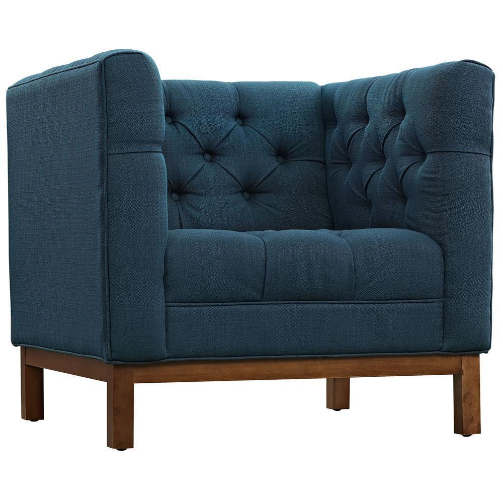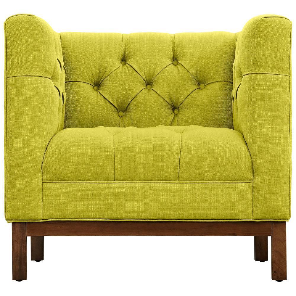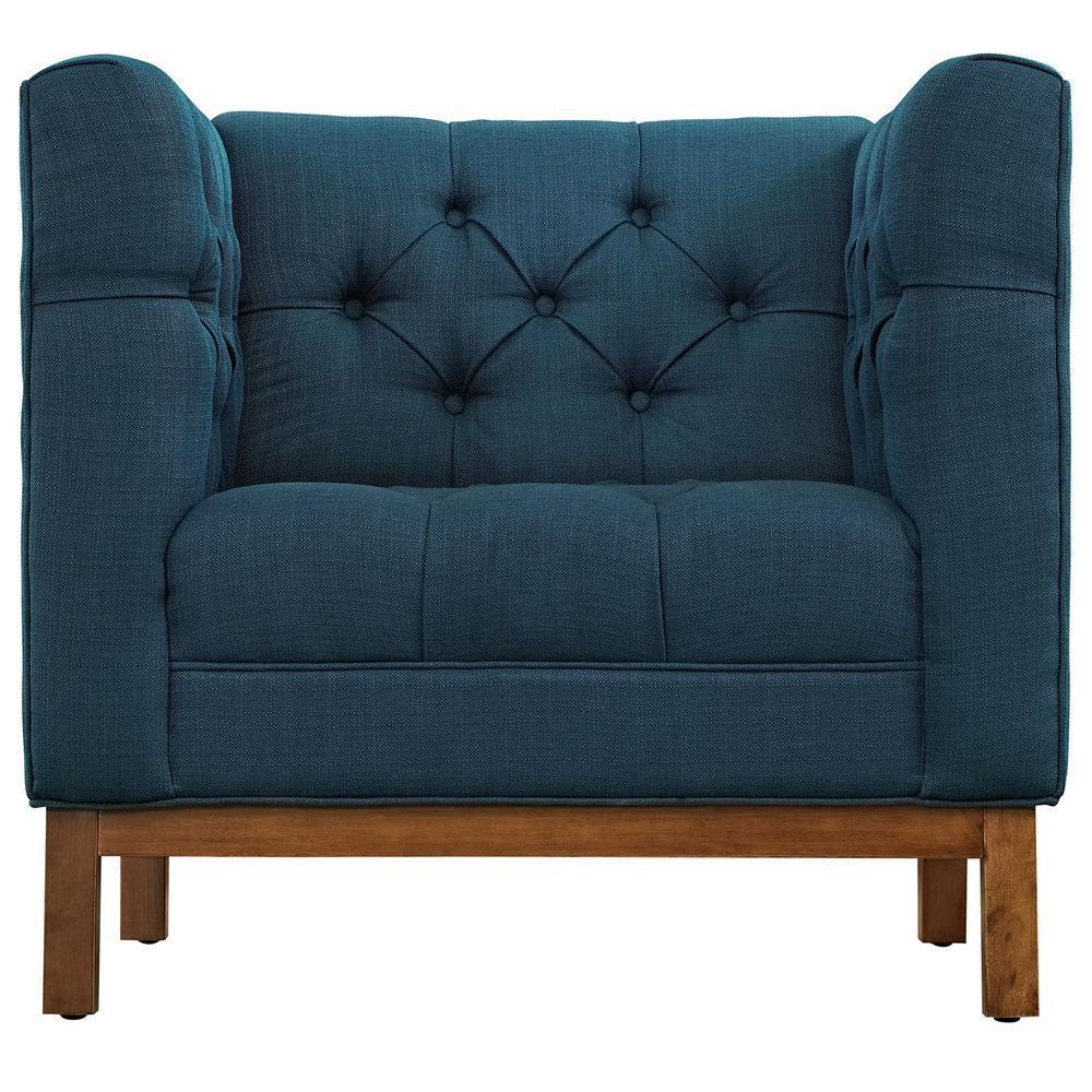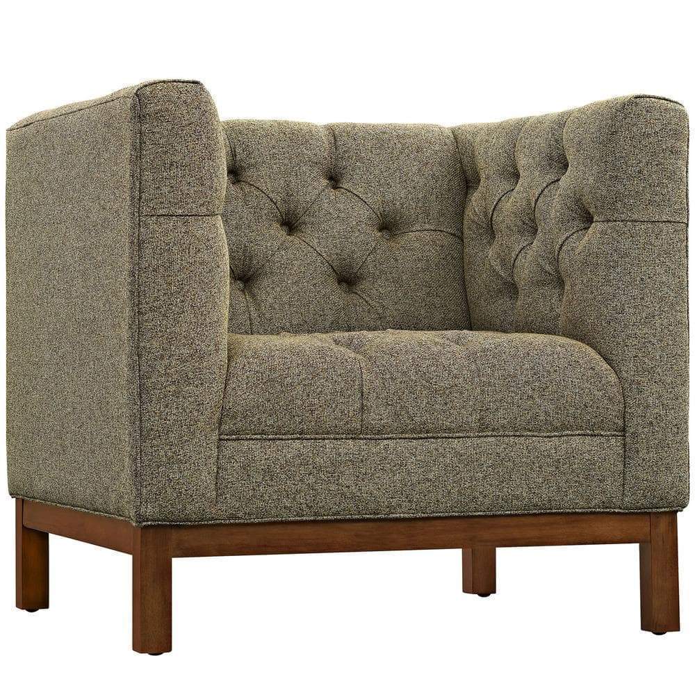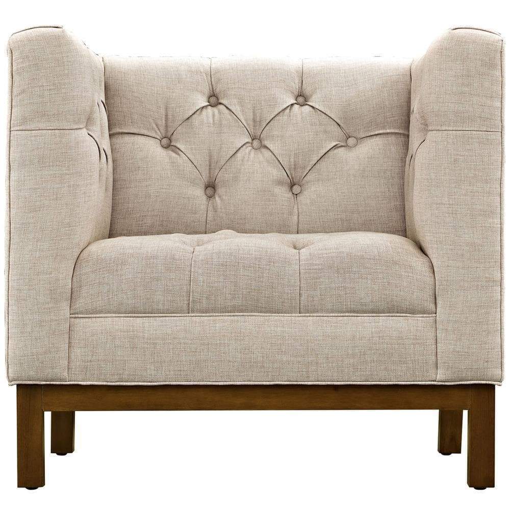 Add vivacity to your décor with the Panache Collection. Designed to express elegance and comfort, Panache comes outfitted with deeply tufted buttons and plush cushions for a timeless charm. Constructed with solid wood legs, fine fabric upholstering, and a reinvented mid-century style design with a dash of vintage charm, enhance your living room, lounge or meeting area with the Panache Collection. Set Includes: Two - Panache Fabric Armchair