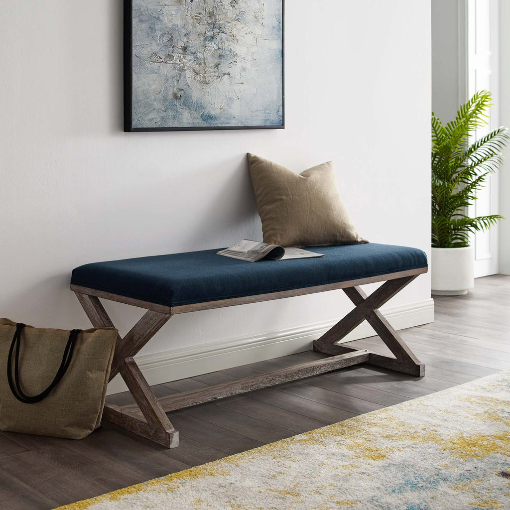 Modway Province Vintage French X-Brace Upholstered Fabric Bench