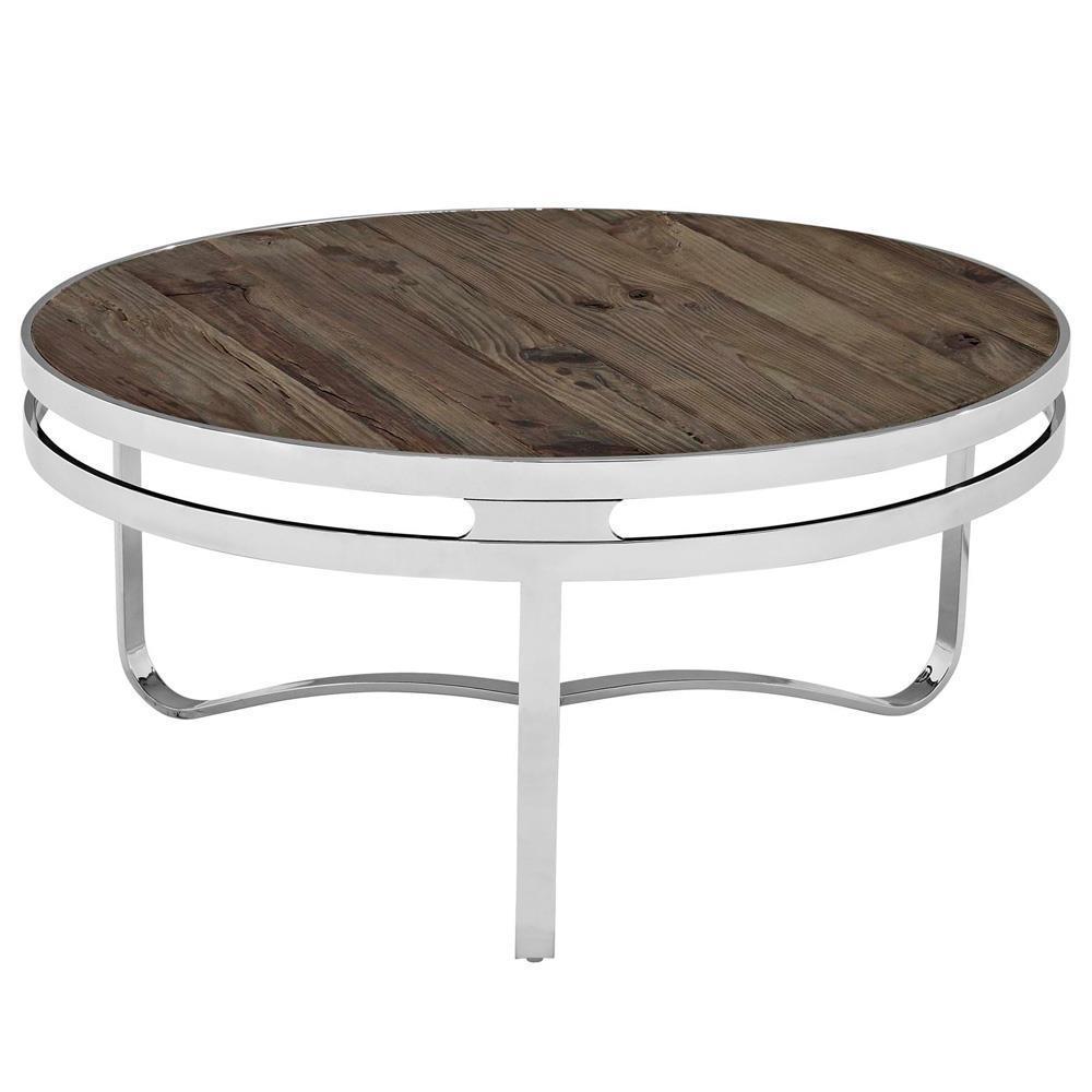 Strategically place your conversational belongings on this industrial modern coffee table. Provision is constructed of stainless steel and a pine wood top for a synergistic blend of nature and industry. Provision's two-tiered rim reminds us that even in an era of progress, we must always endeavor to keep our aspirations close to the ground.