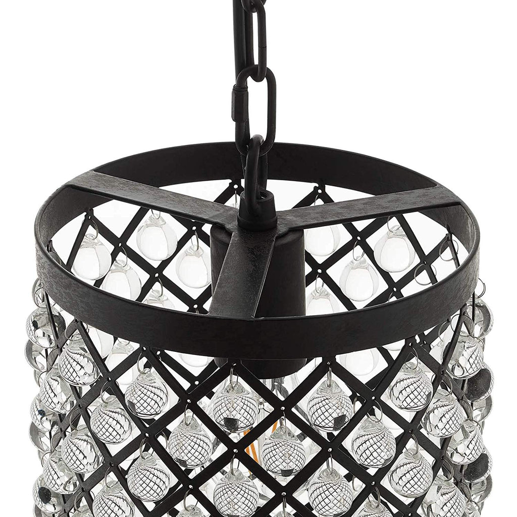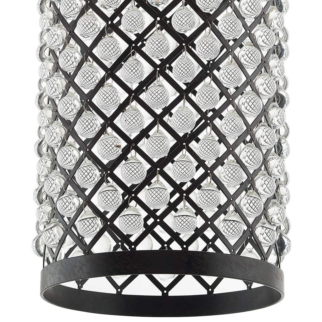 Elevate and illuminate your decor with Reflect, an artful pendant chandelier with a blend of rustic intrigue and contemporary elegance. A dazzling addition above the dining room table or in an entryway, this cylindrical-shaped metal pendant is accentuated by a distressed black lacquer finish, which alluringly complements the glass beads hung in each diamond cut out. Requires one E26 60W bulb (not included). Set Includes: One - Reflect Pendant Chandelier