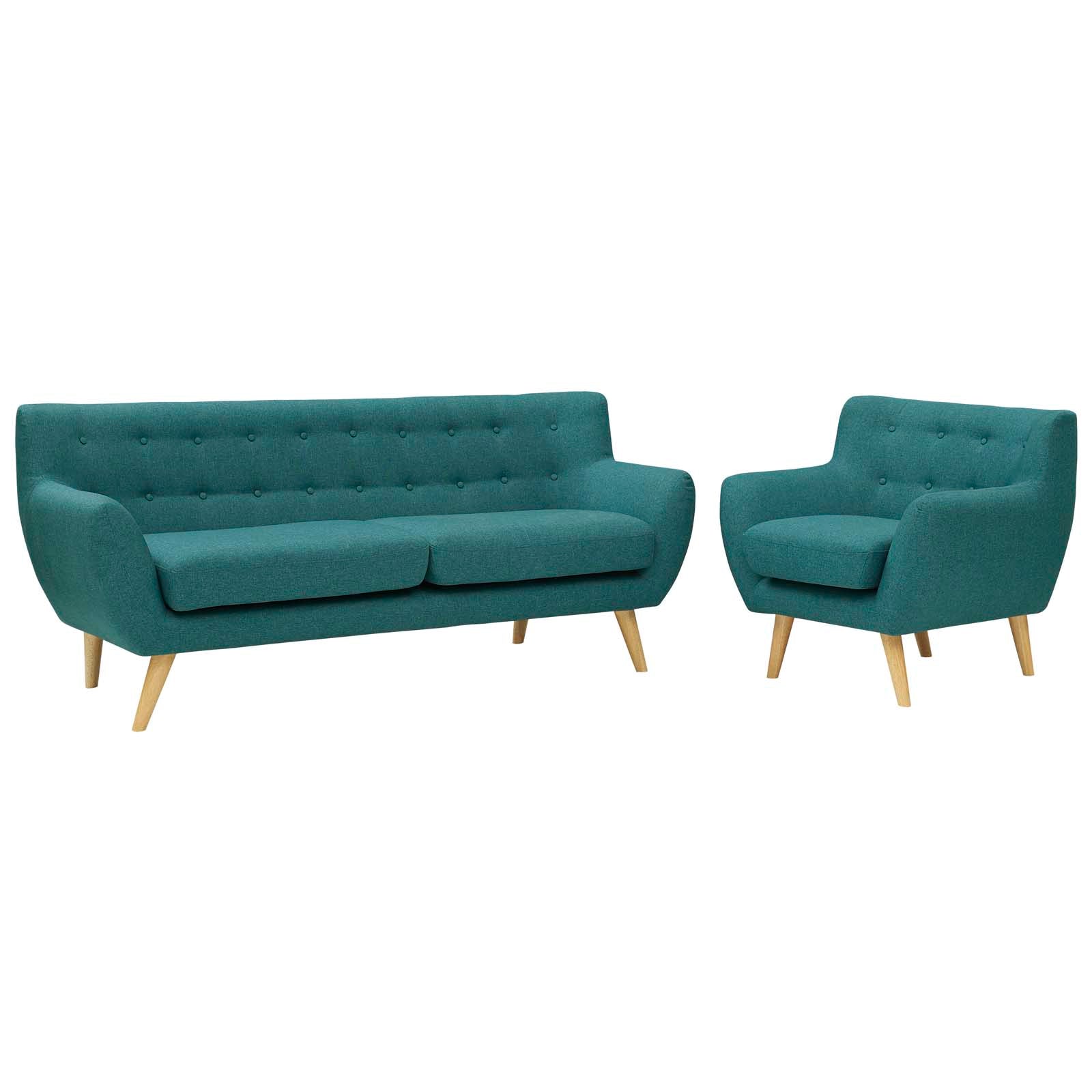 Take notice and engage your sensibilities with this plush dual cushion, organically shaped Living Room Set. Remark is gracefully positioned on solid natural wood dowel legs designed according to mid-century sentiments. Whether settling in with coffee and brunch, or entering a spirited discussion with friends, Remark’s polyester upholstery, two rows of finely stitched back seat buttons, and organic form ensure an eye-catching appeal at every turn. Bring depth and modernity to your contemporary living room or lounge area with the Remark mid-century modern style Living Room Set. Set Includes: One - Remark Armchair One - Remark Sofa