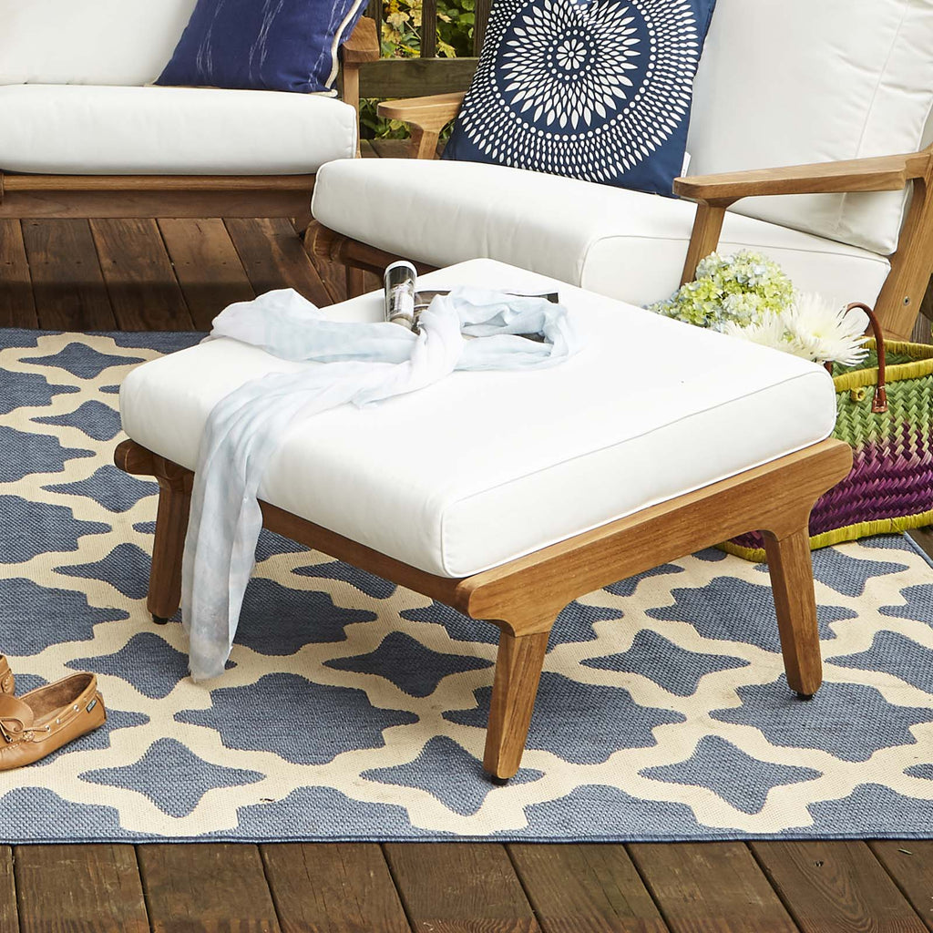 Refresh your space with the Saratoga Outdoor Patio Collection. Expertly crafted with Premium Grade A Teak Wood, Saratoga Outdoor Patio Ottoman features a striking slanted back design for the ultimate in both ergonomic comfort and contemporary design. A quality modern outdoor patio furniture series, Saratoga Outdoor Ottoman comes with machine washable sun, stain, water, and fade resistant Sunproof® Fabric with fine trim, mesh back, and wood slatted seat for durable, long-lasting support. The ideal setting for lounging or entertaining, the Saratoga Outdoor Patio Furniture Collection features combinations perfect for balconies, backyards, patios, gazebos, poolside or garden spaces. Includes non-marking plastic foot caps. Set Includes: One - Saratoga Ottoman