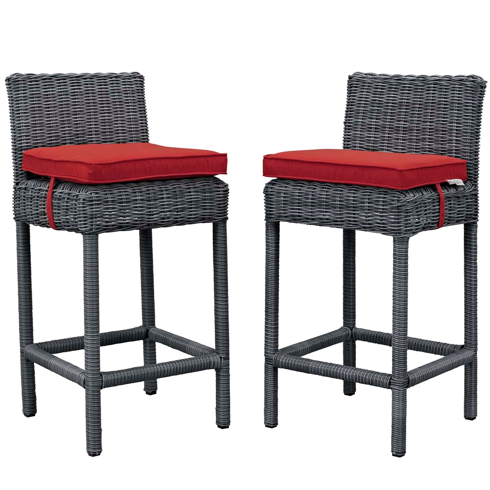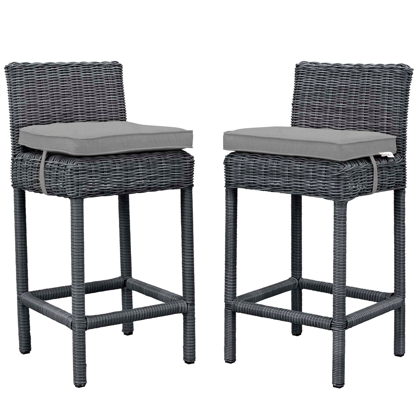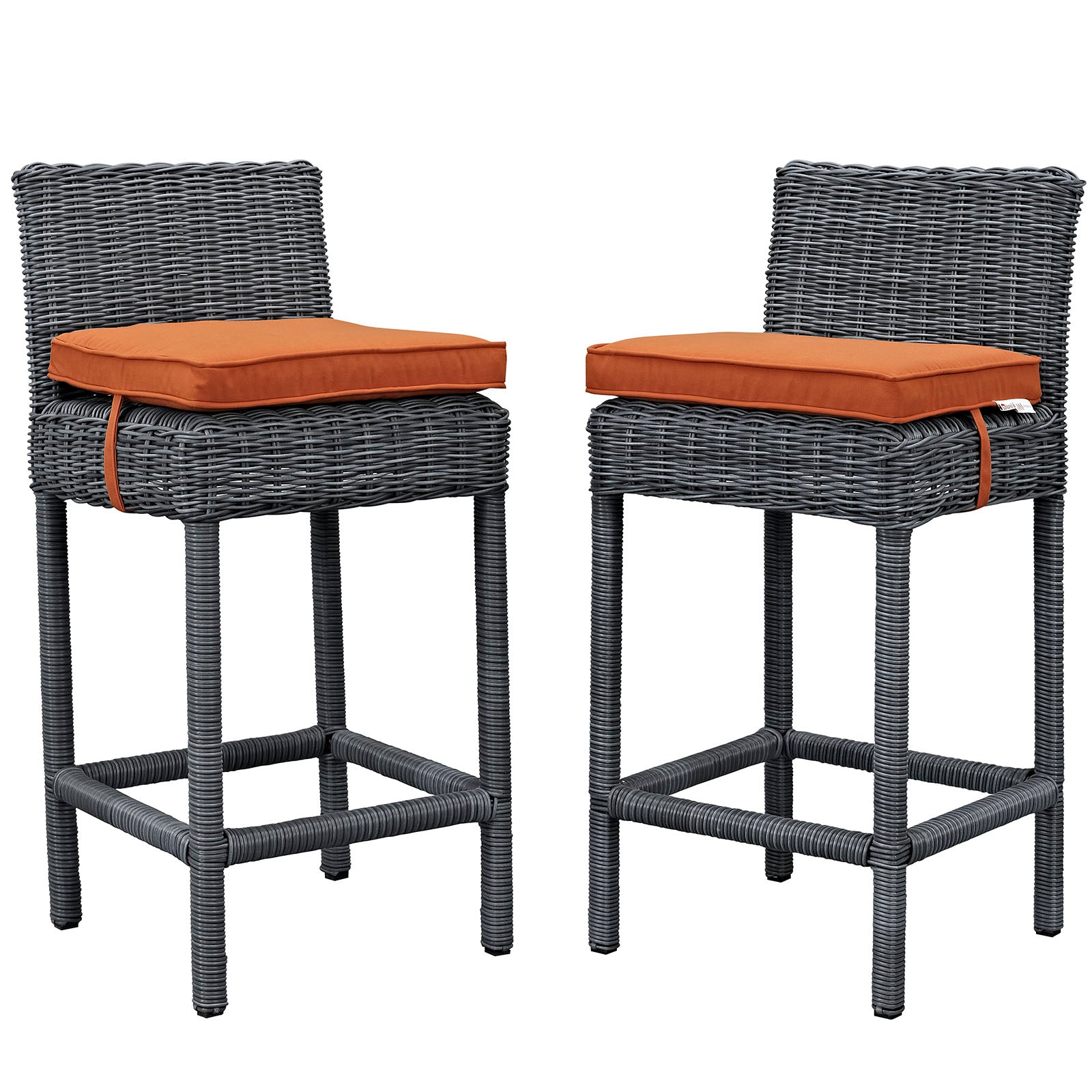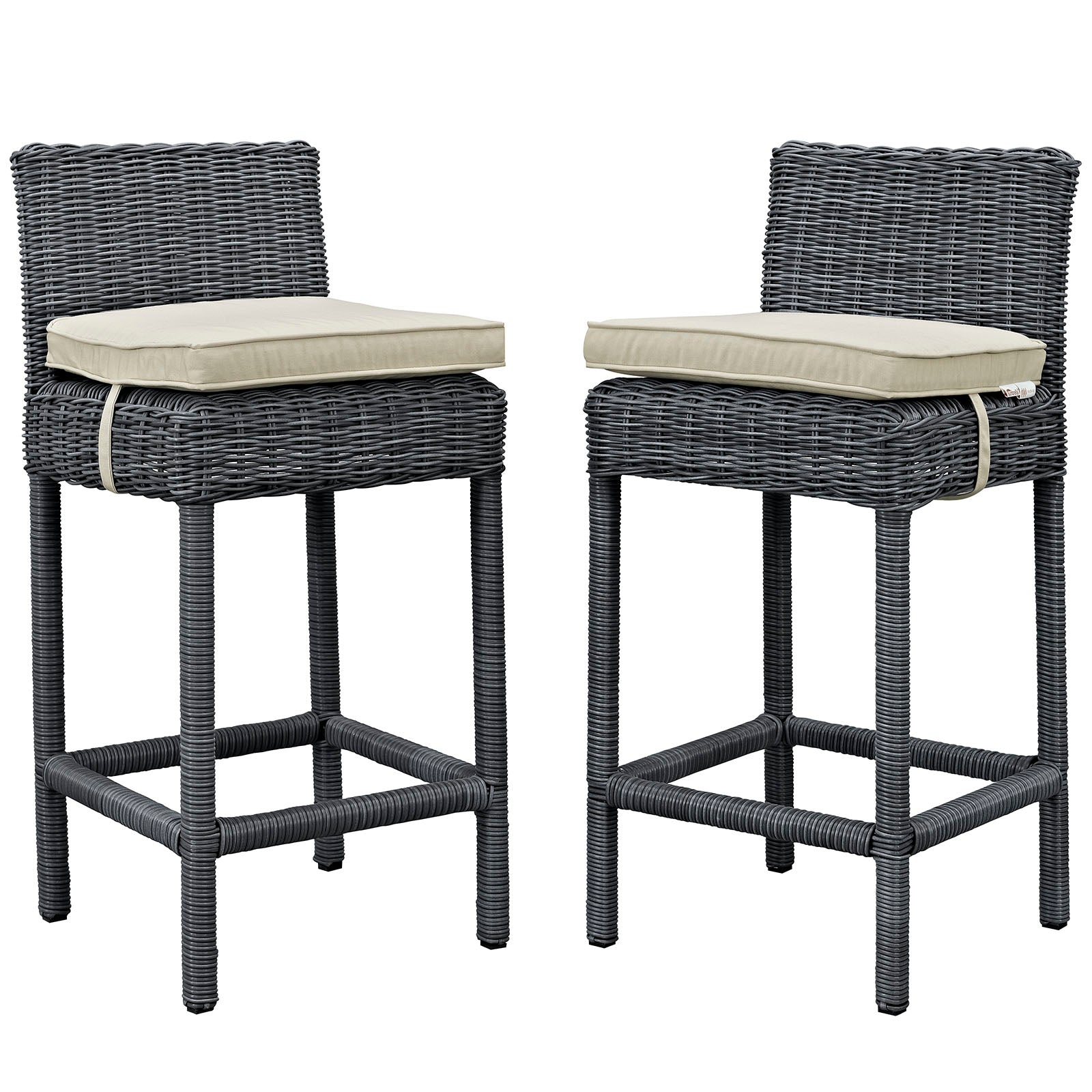 Experience the outdoors with exceptional comfort and quality. Summon Outdoor Patio Bar Stool offers an exquisite two-tone synthetic rattan weave, plush all-weather cushions with industry-leading Sunbrella® fabric, UV protection, and a sturdy powder-coated aluminum frame. Featuring an elegant modern look, Summon Patio Bar Stool is part of an avant-garde outdoor sectional series well-equipped for enhancing patio, backyard, or poolside gatherings. This installment of the series is an Outdoor Patio Bar Stool. Set Includes: Two - Summon Bar Stool