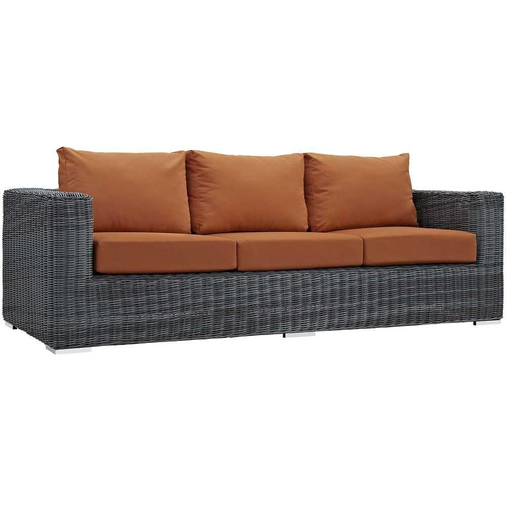 Experience the outdoors with exceptional comfort and quality. Summon Outdoor Patio Sofa offers an exquisite two-tone synthetic rattan weave, plush all-weather cushions with industry-leading Sunbrella® fabric, UV protection, and a sturdy powder-coated aluminum frame. Featuring an elegant modern look, Summon Patio Sofa is part of an avant-garde outdoor sectional series well-equipped for enhancing patio, backyard, or poolside gatherings. This installment of the series is an Outdoor Patio Sofa. Set Includes: One - Summon Sofa