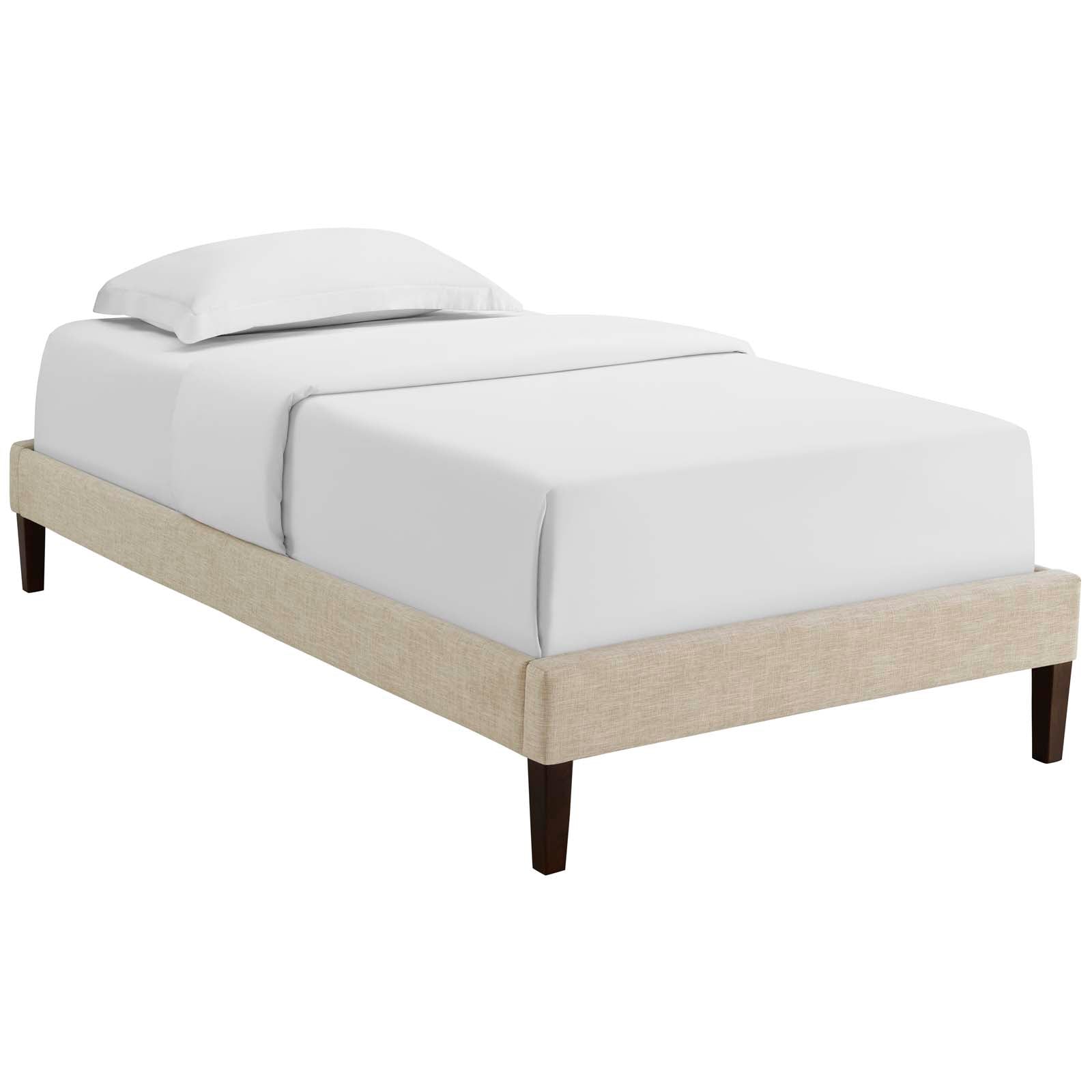 Accelerate your bedroom decor with the Tessie Platform Bed. Made with a solid wood frame upholstered in polyester fabric, Tessie features tapered wood legs, plastic foot glides, ten sturdy wood slats with a centered supporting bar and two support legs for enhanced stability. Due to the wooden slat support system, the use of a box spring is unnecessary. Tessie supports memory foam mattresses such as our Aveline series, and is compatible with one of our headboard styles: Jessamine, Terisa, Laura, Phoebe, Camille, and Josie. Perfect for mid-century modern, minimalist and contemporary bedrooms. Mattress not included Set Includes: 1 - Tessie Bed Frame