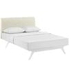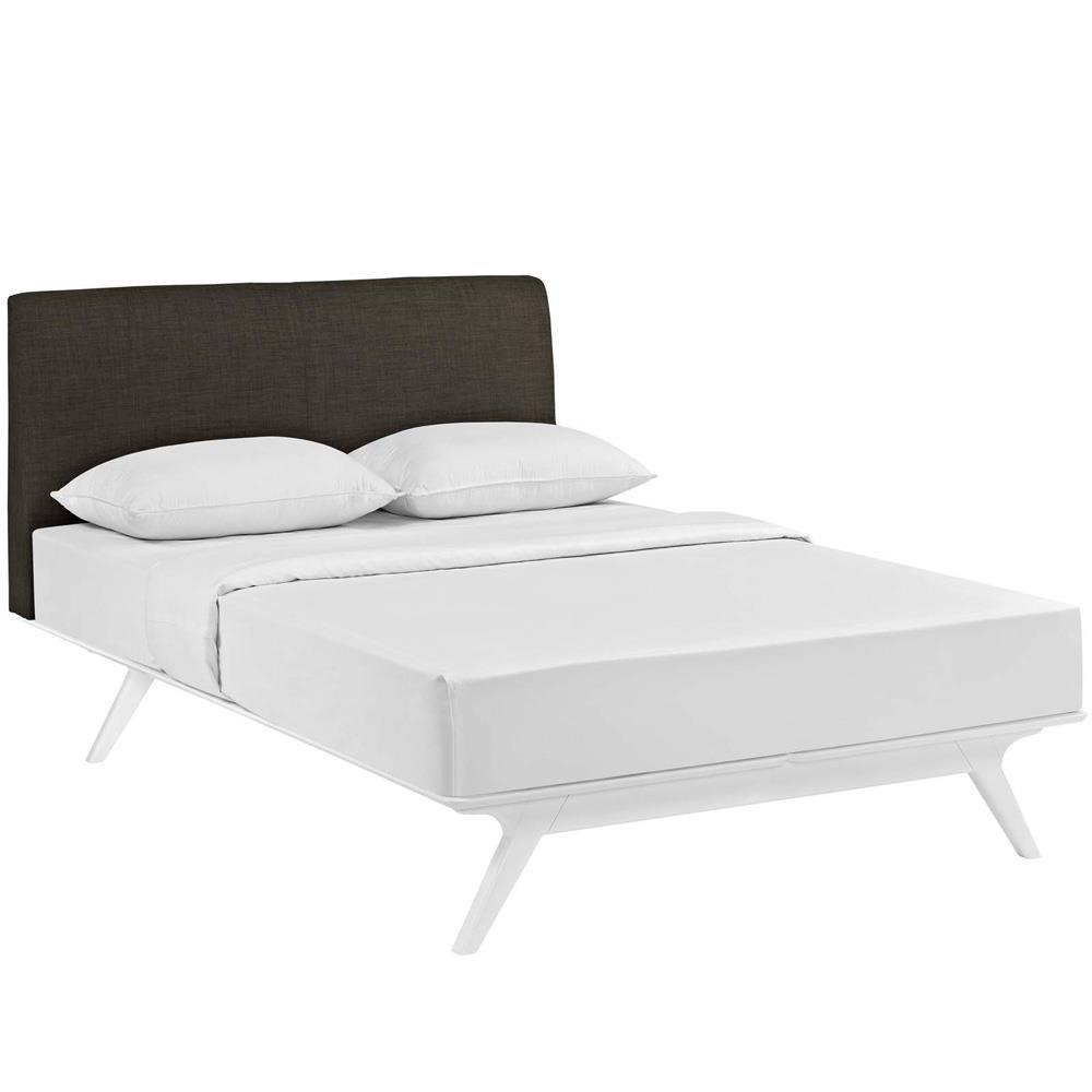Transform your ordinary bedroom arrangements into a more compelling decor with the Tracy King size platform bed. Made of sturdy MDF boards, Tracy with its open design and platform leg support, proves that elegance doesn't need to come at the expense of simplicity. Finely upholstered with a foam padded fabric headboard, Tracy is an easy to maintain toffee brown stained piece that admirably delivers both comfort and style. Tracy requires assembly, and should be spot cleaned only. Headboard included. King size mattress not included. The Tracy King size platform bed does not need a boxspring.Set Includes:One - Tracy King Bed Frame