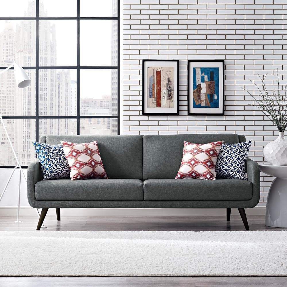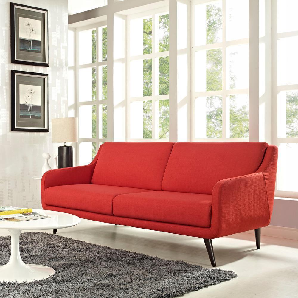 Be counted with Verve. Designed to be a spirited and enthusiastic piece that exudes mid-century charm, Verve leaves a lasting impression with its free-flowing organic form and minimalist elegance. Solidly made with exceptional support, Verve features dense foam cushioning, espresso stained wood legs and generous seating space. This mid-century inspired sofa is perfect for modern and eclectic living rooms, lounge spaces, and reception areas.Set Includes:1 - Verge Sofa
