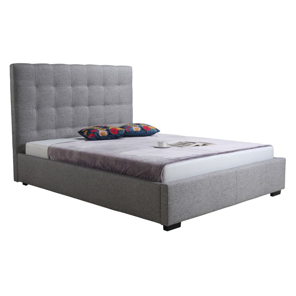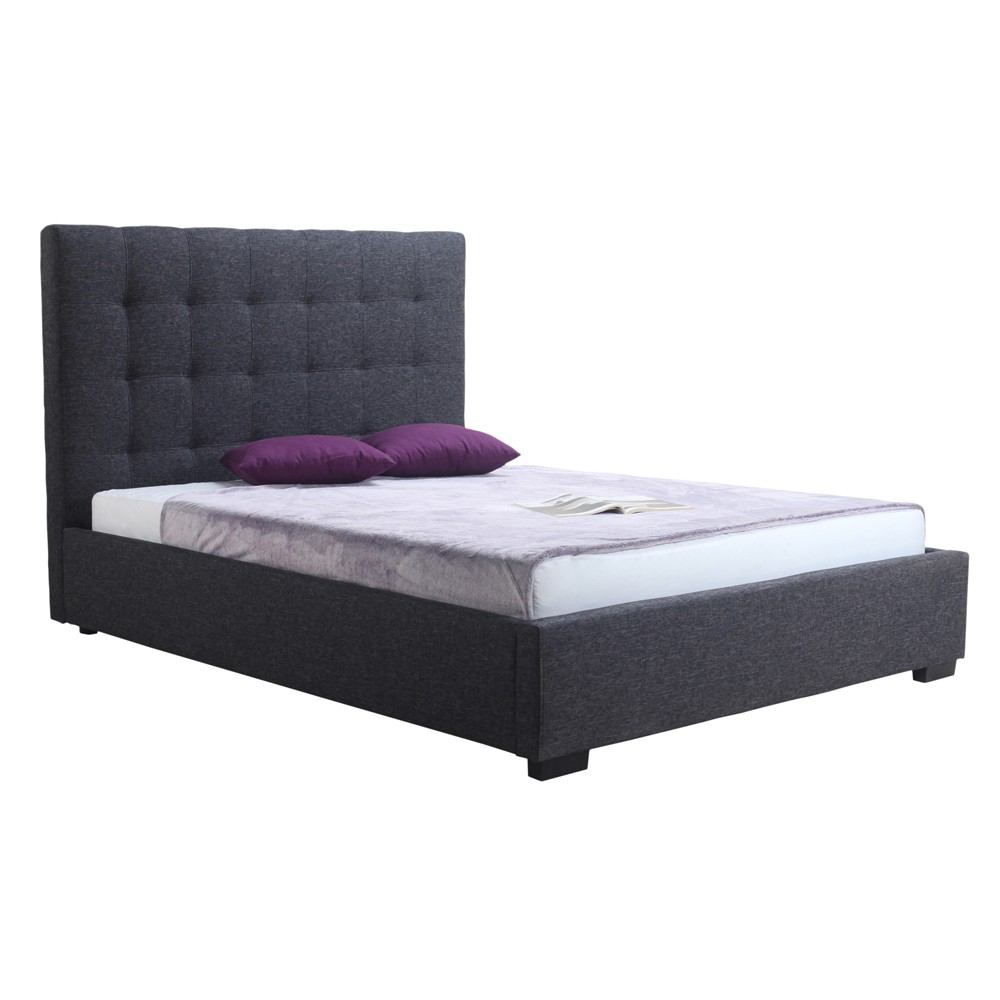 Platform bed design. Tufted headboard. Hydraulic slat system lifts up for storage. Back of the headboard is not upholstered but covered with a dust protector. Contemporary Modern Style. Part of Belle collection. Made in China.