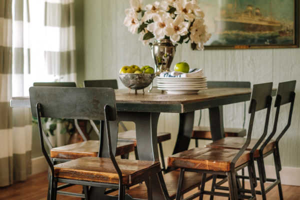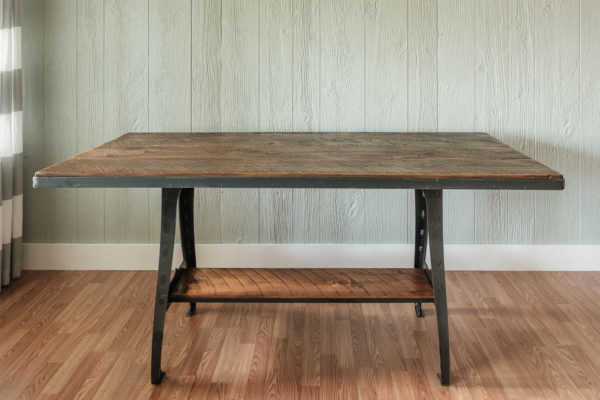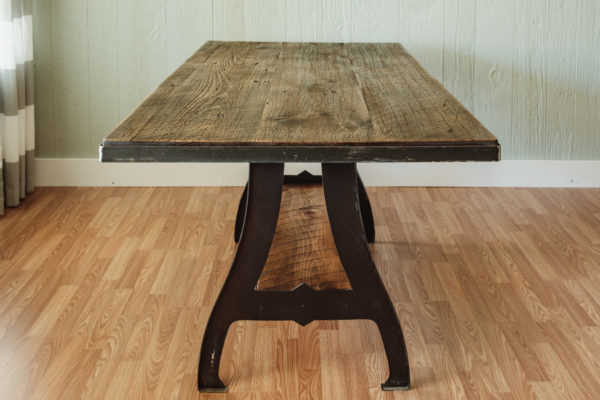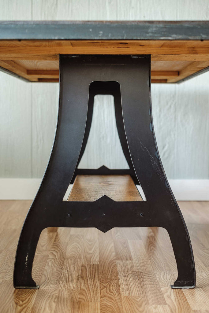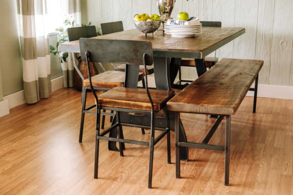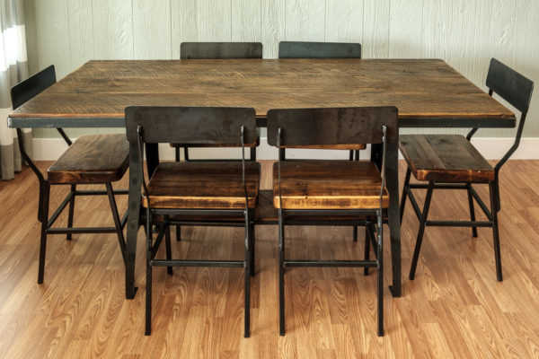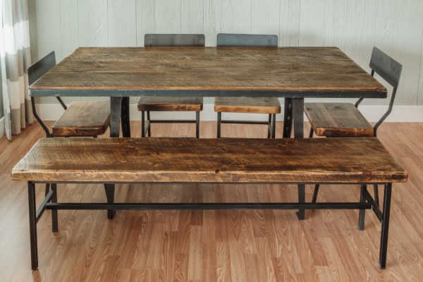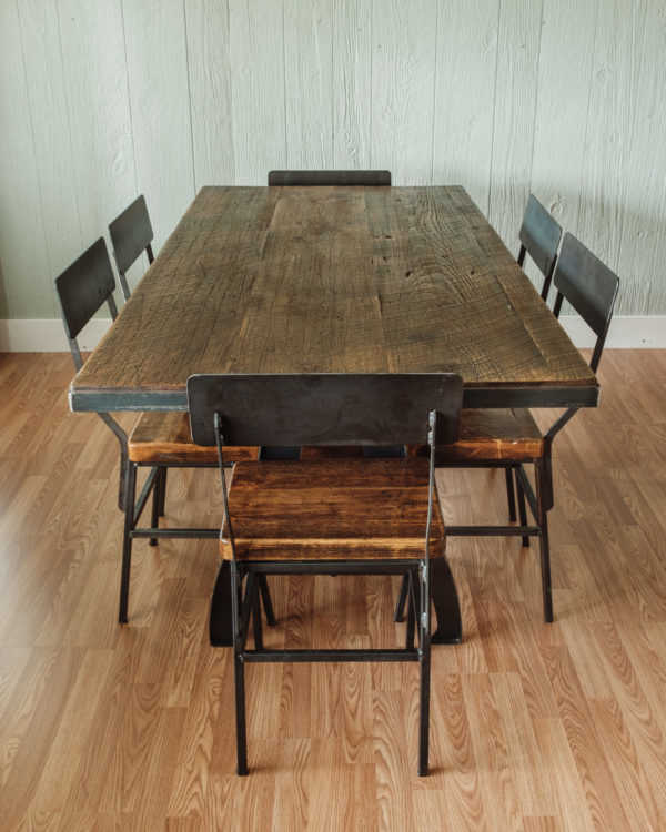 Blending rustic design with a touch of industrial appeal the Mill and Foundry Table provides an ideal centerpiece for any dining area. Crafted from reclaimed rough sawn wood and framed in metal, it is the perfect combination of style, texture, and durability.
