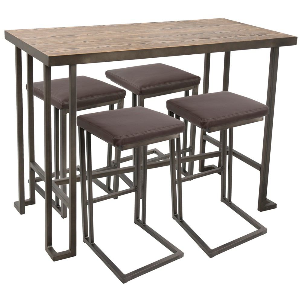 With its industrial undertones and modern profile, the Roman Counter Table Set from LumiSource is sure to conquer your kitchen, dining, or bar space. This set features a metal frame, bamboo top, and fixed height Stool with faux leather seats. Includes four counter Stool and one counter Table.