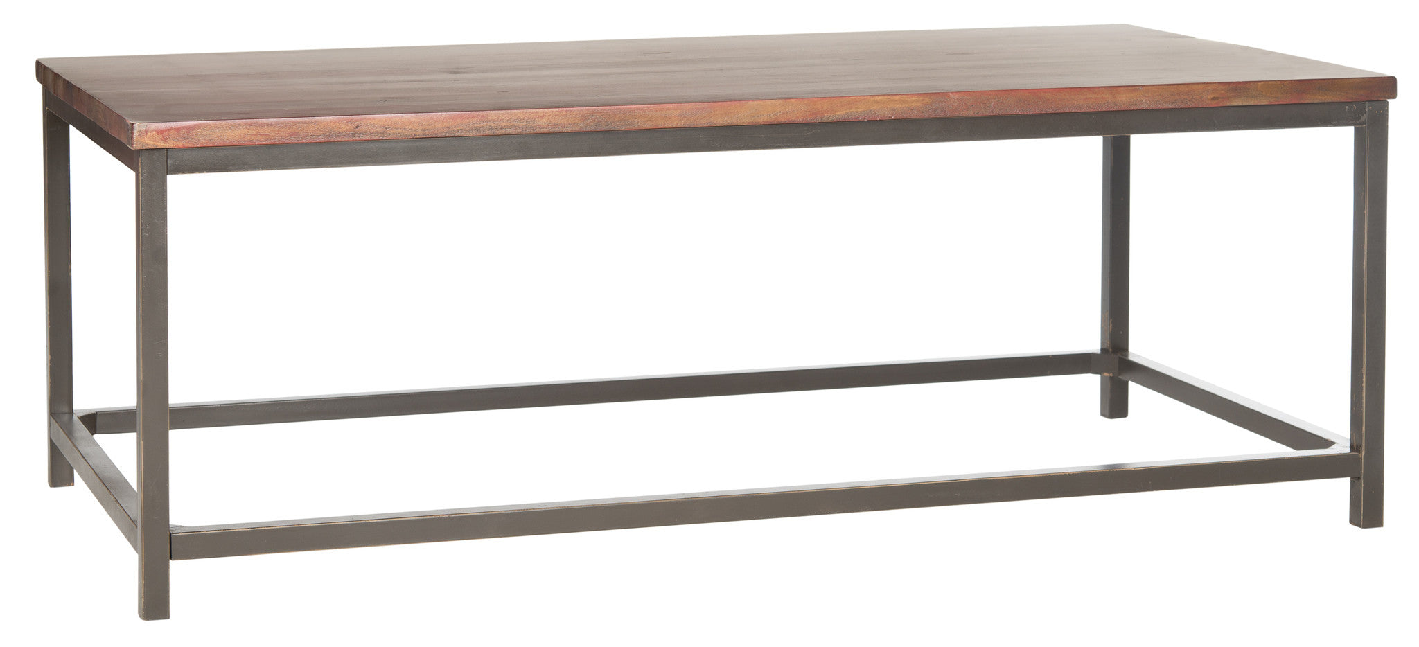 Mix the transitional Alec coffee table with other periods and styles for an eclectic, curated look. Inspired by the industrial furniture trend, its fir wood in medium oak finish is the perfect counterpoint to dark walnut-toned metal legs and stretchers. Crafted by Safavieh, this coffee table is destined to become a future classic.