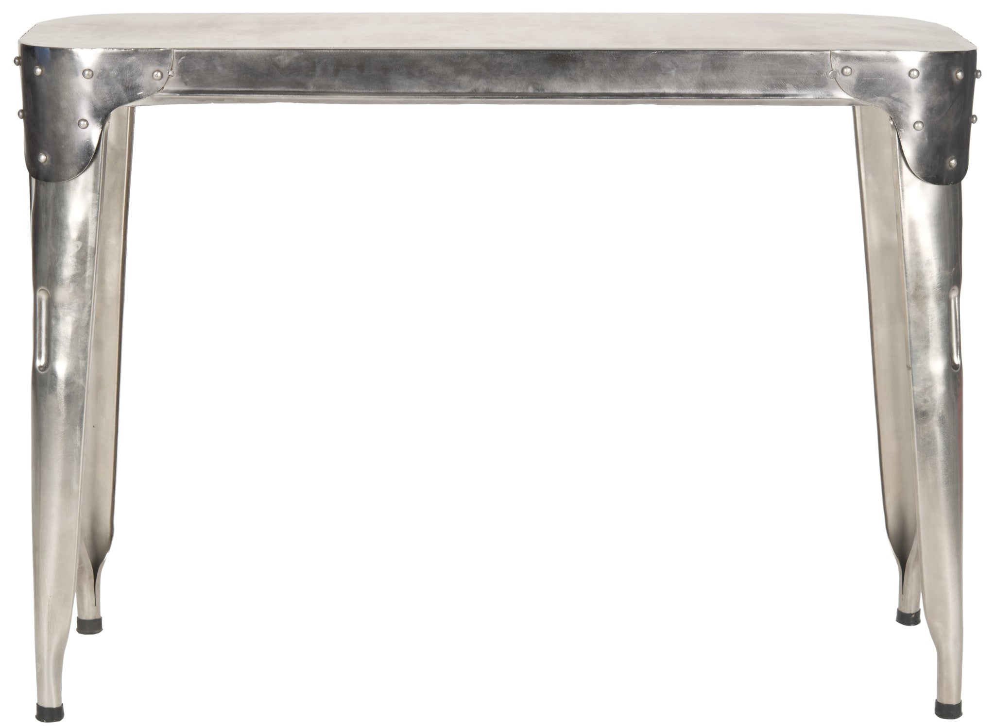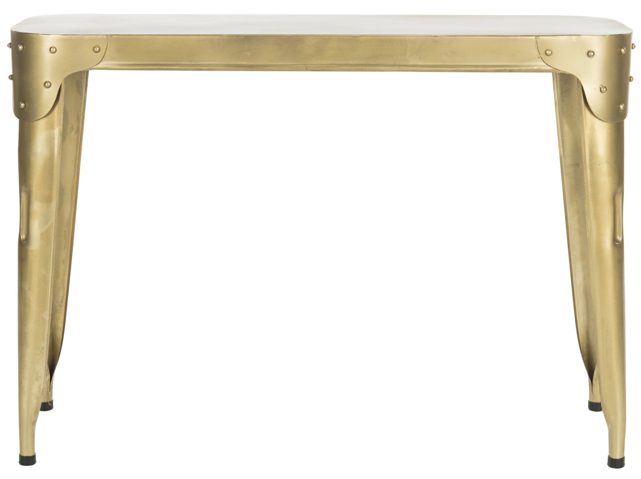 The industrial-chic Classic iron console table by Safavieh will brighten an entry hall or living room with an air of masculine sophistication. Crafted of by metal artisans, each one of a kind console is beautifully detailed with riveted corner patches.