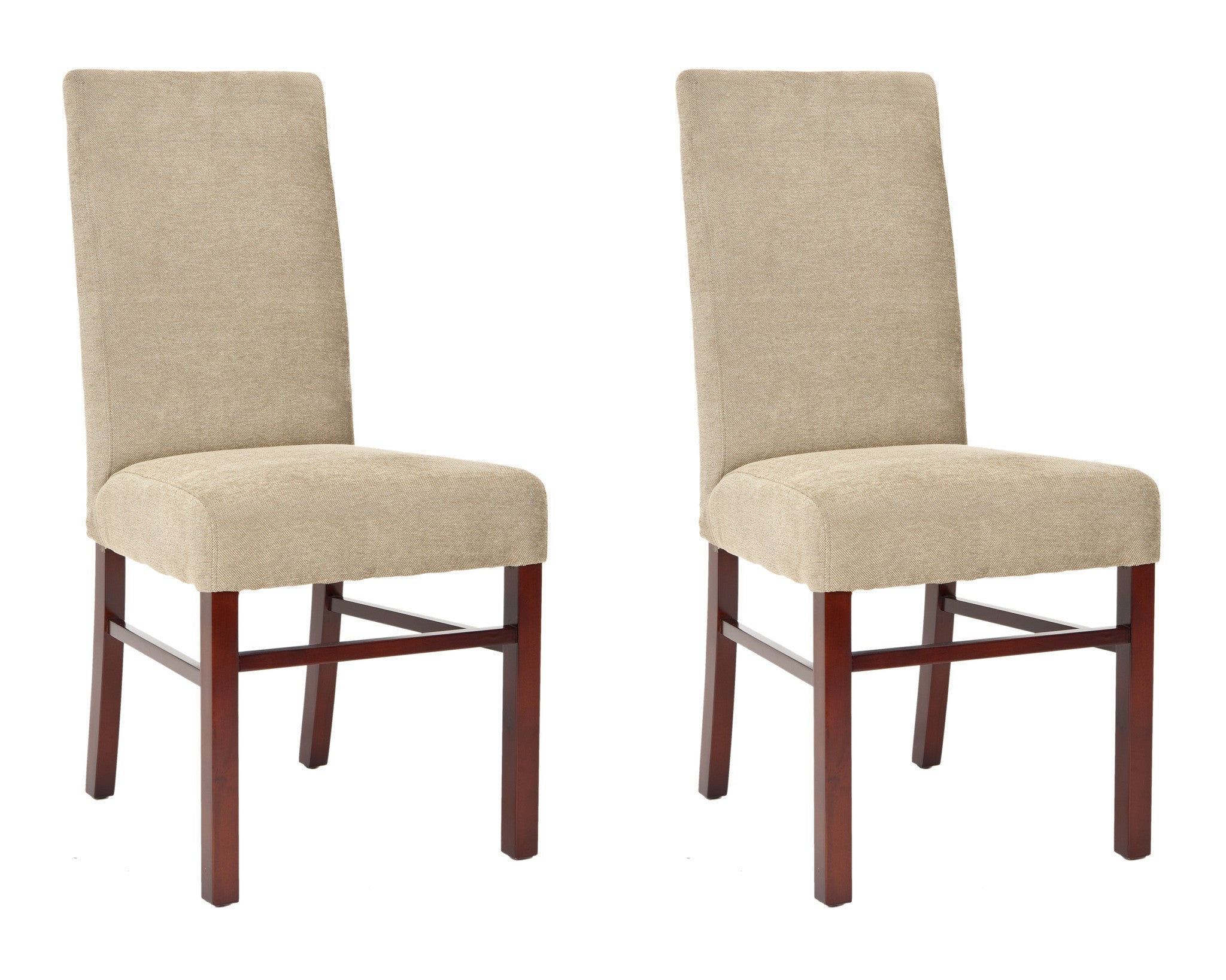 Safavieh's Classic side chair has a timeless appeal that won't fade with fads. Characterized by clean lines and well-balanced proportions, Classic, shown in cream-and-tan striped cotton fabric and cherry mahogany finished legs, is at home in traditional and transitional settings.