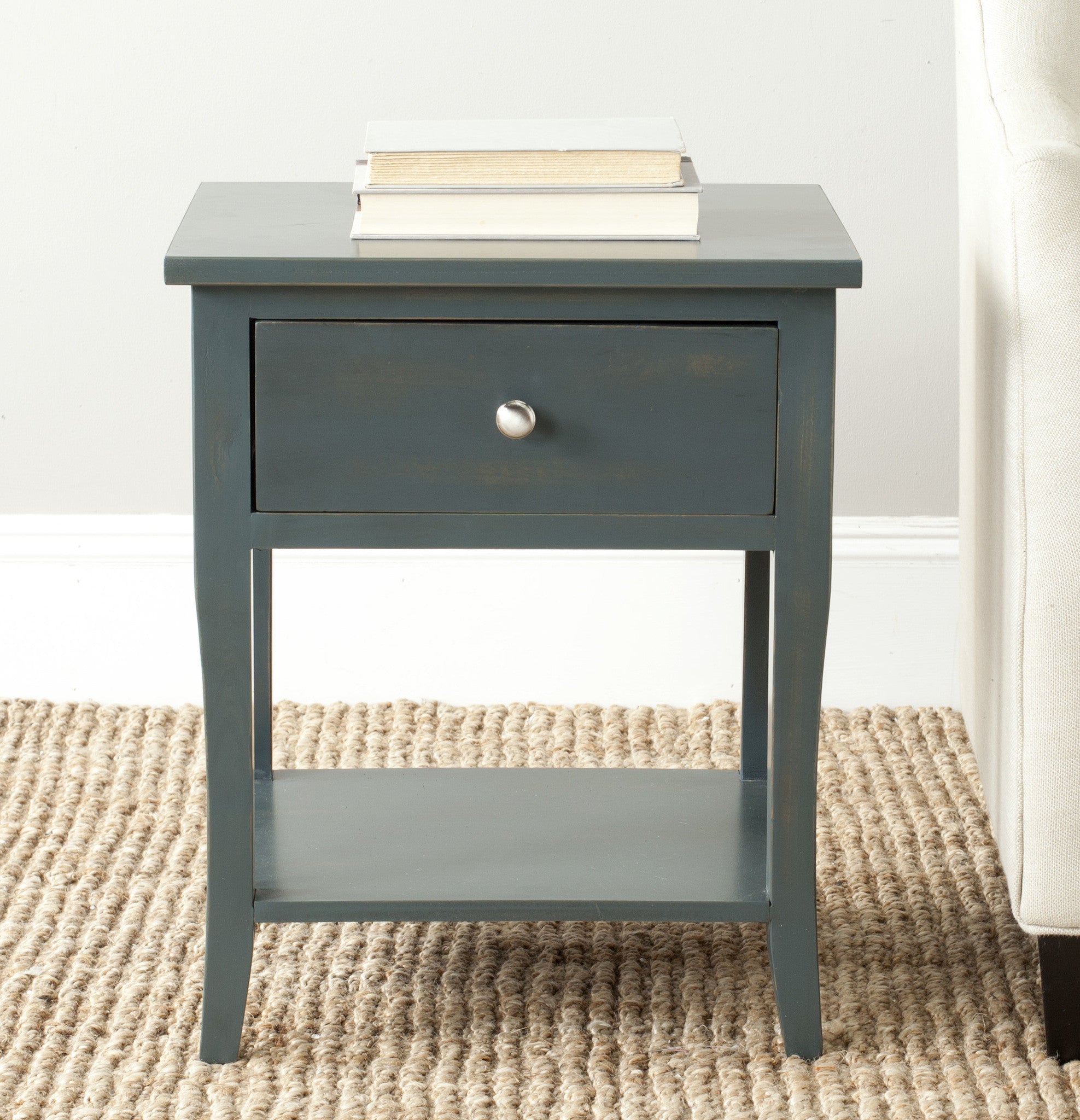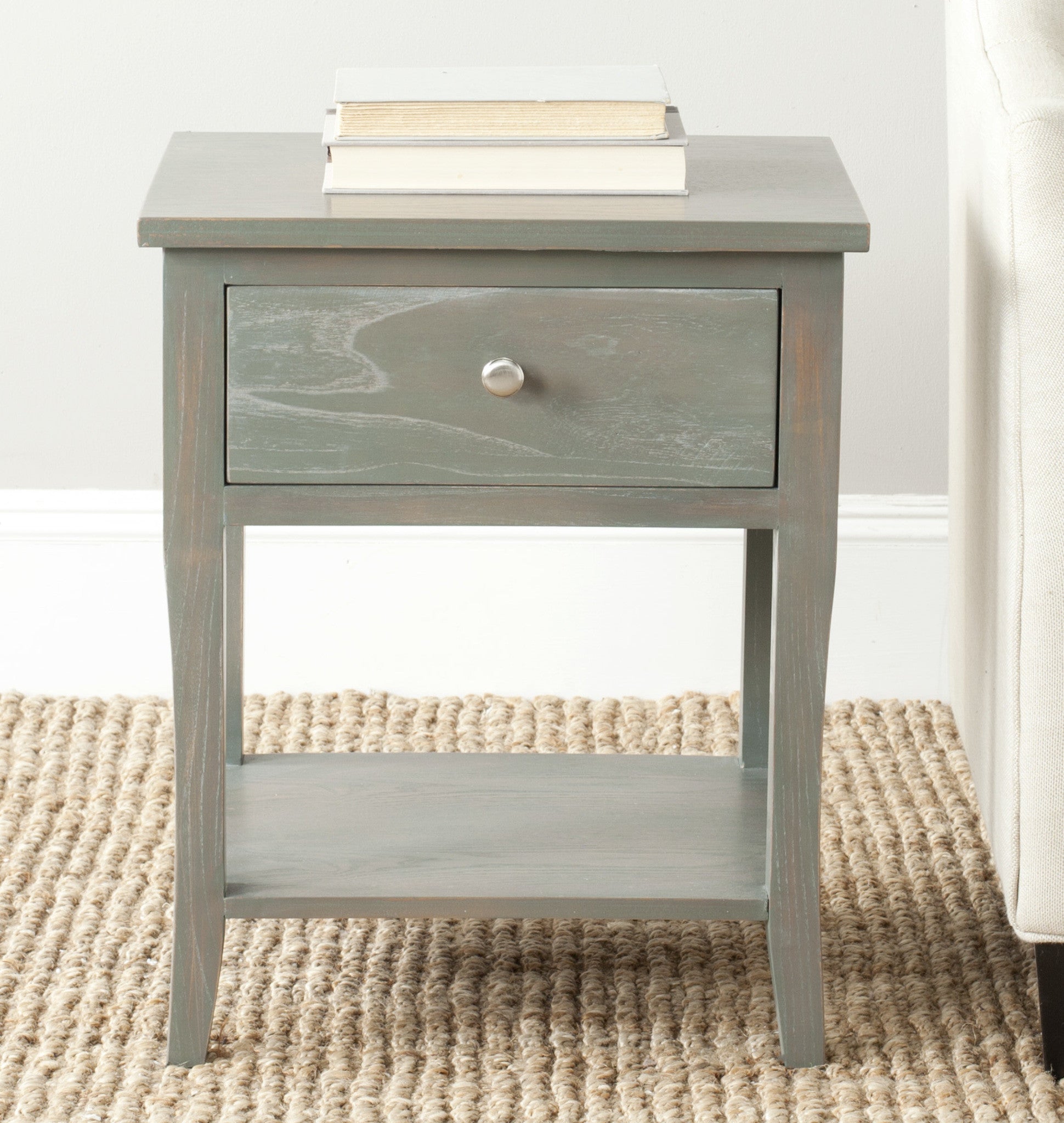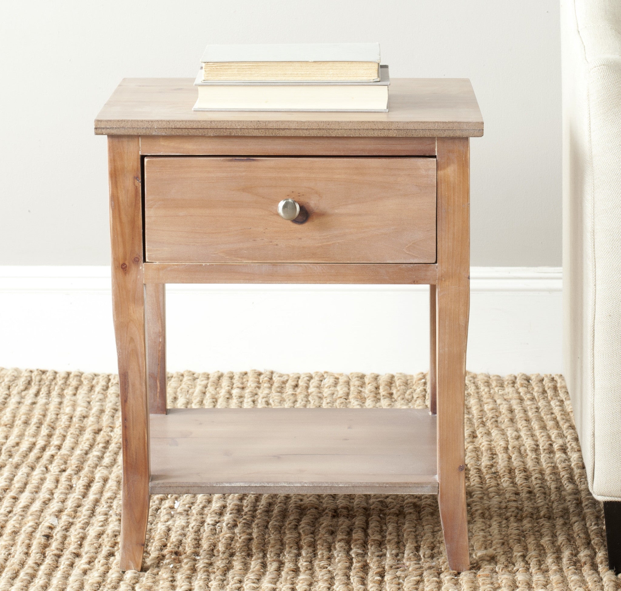 Designed to complement country and coastal interiors, the traditional lines of the Coby end table are classic and timeless. Crafted of elm wood with a chic ash grey finish, this table with its handy storage drawer is the ideal height for a sofa or club chair. Use the Coby end table in the living room, family room or perhaps beside a guest room bed.