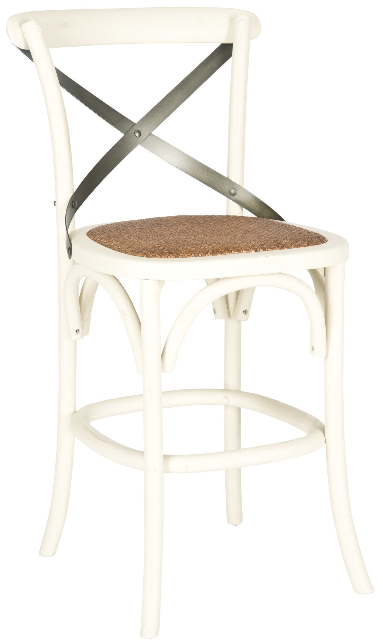 Extend the classic Thonet look from the dining table to the kitchen counter or work island with the EleaNr X-back counter stool. N chair is as famous as Thonet's bentwood caf© model, and Safavieh's counter stool captures the look in ivory-finished oak with graceful frame, rattan seat and authentic cross back arch brace in black metal.