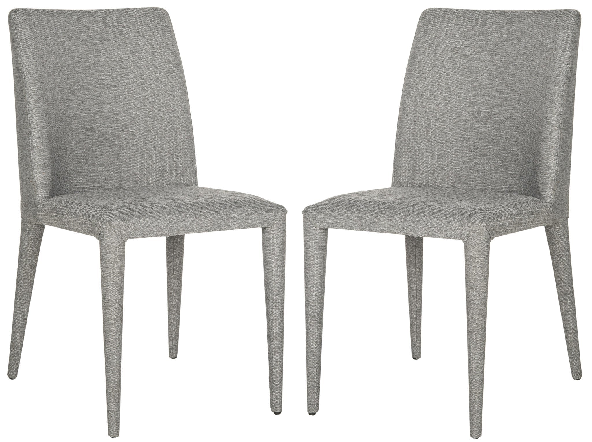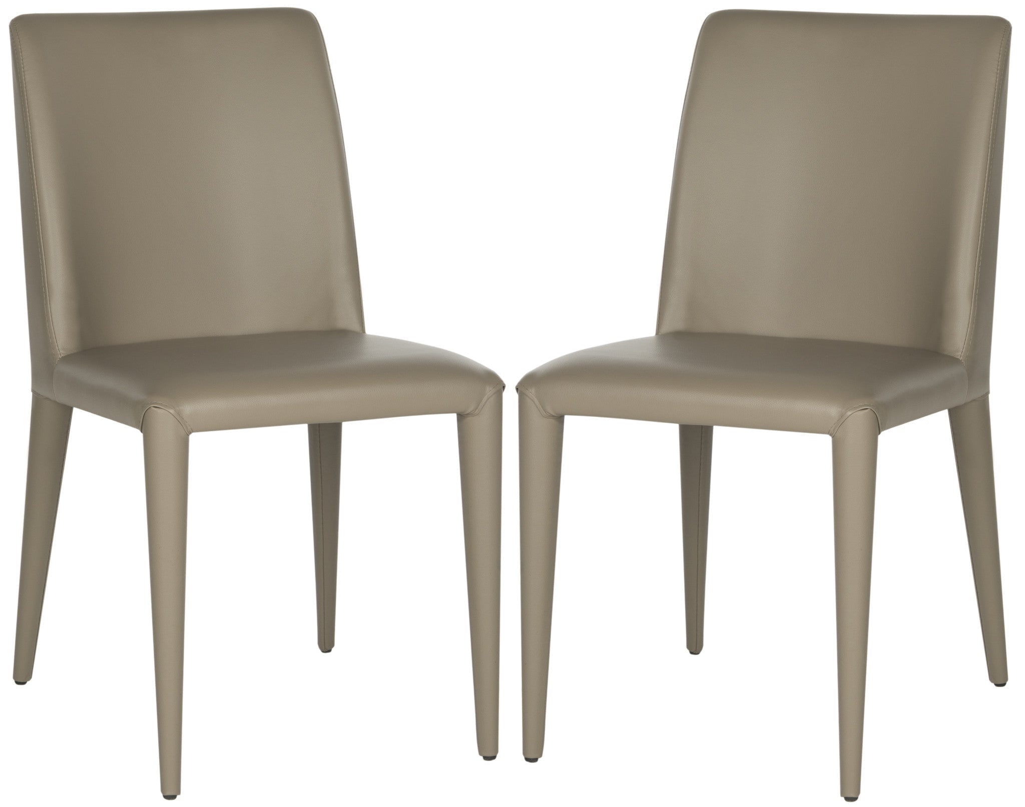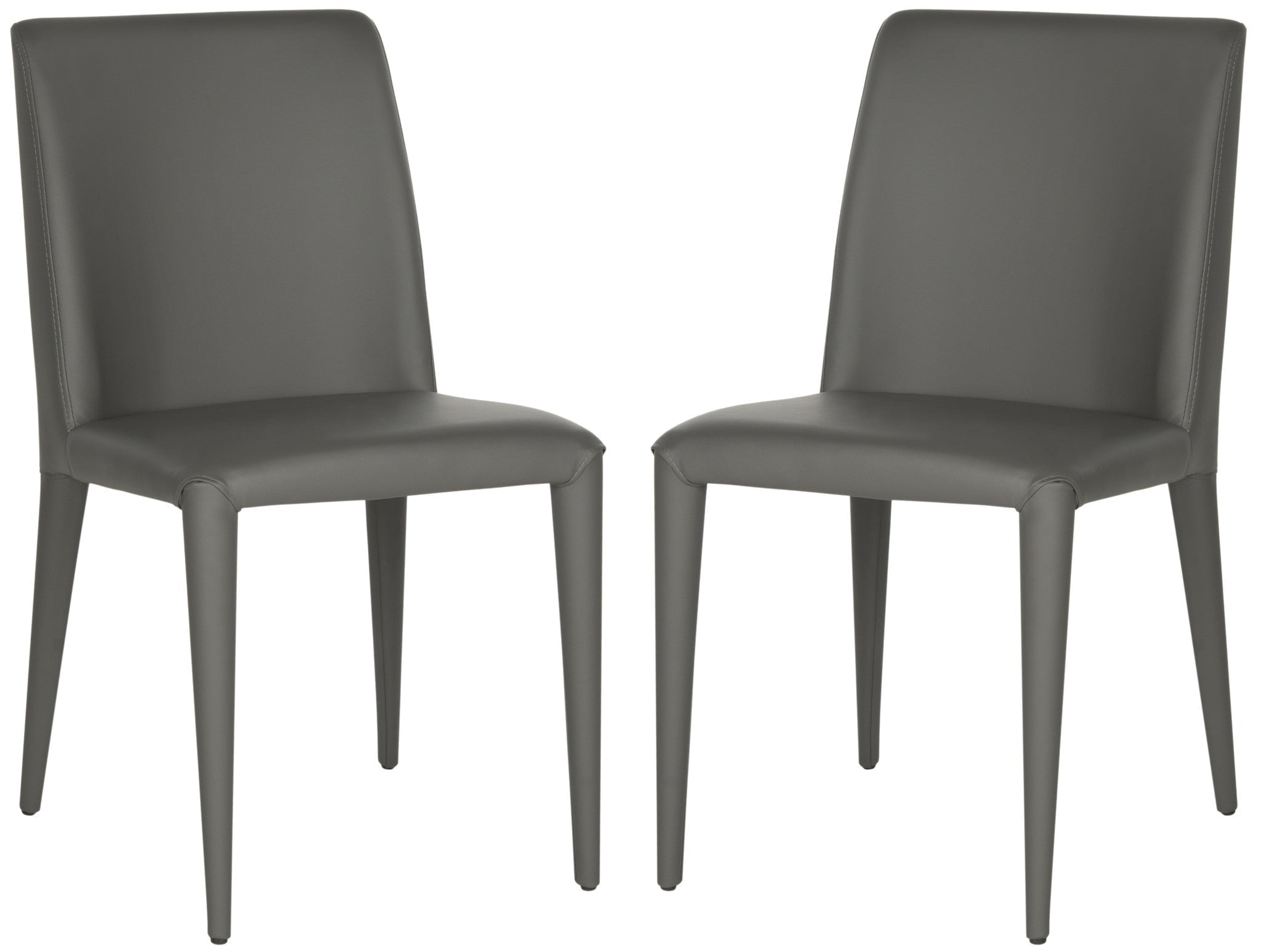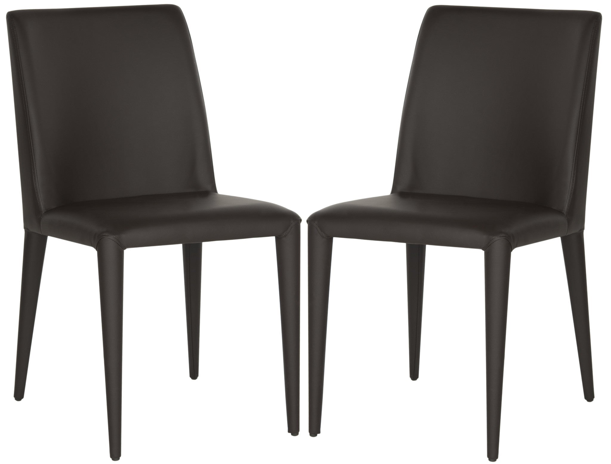 Modern elegance defines the clean-cut lines of this set of two white side chairs combining the tactile quality of leather with a high tech sculpted silhouette. Crafted of PU leather and iron, this design is a contemporary kitchen or dining room essential.