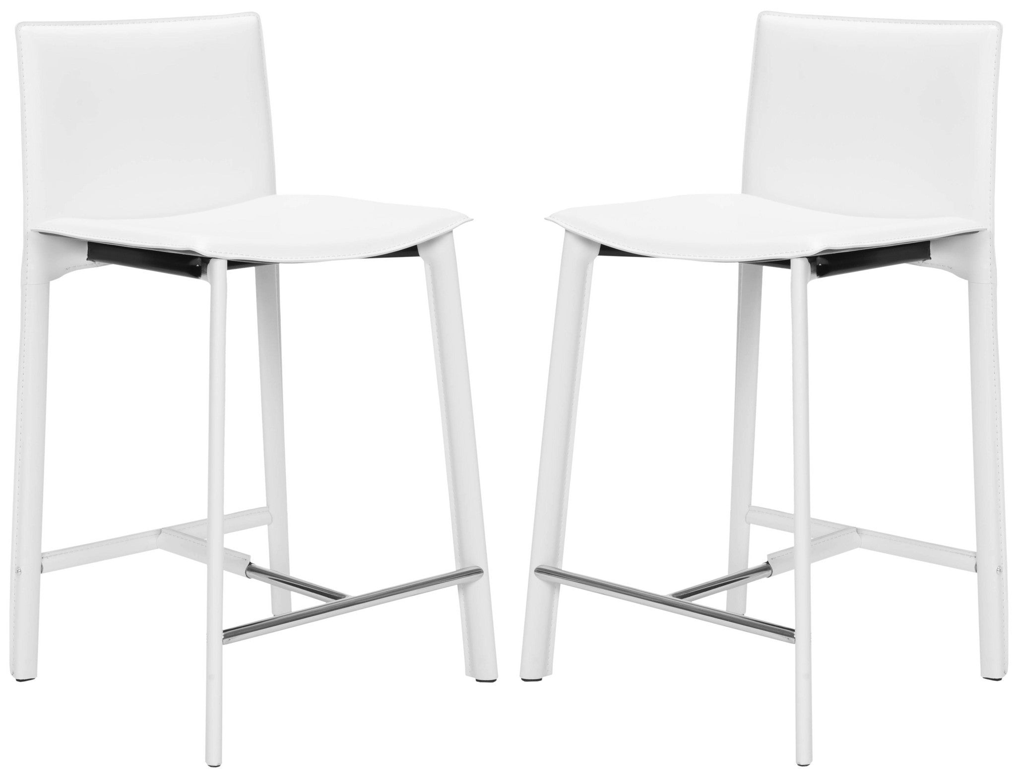 Equal parts good looks and practicality, the 24" Janet counter stool complements kitchens and family rooms designed for comfort and chic contemporary style. With slightly flared legs, stainless steel foot rails and an iron frame completely upholstered in white bonded leather, Janet will deliver years of active family service.