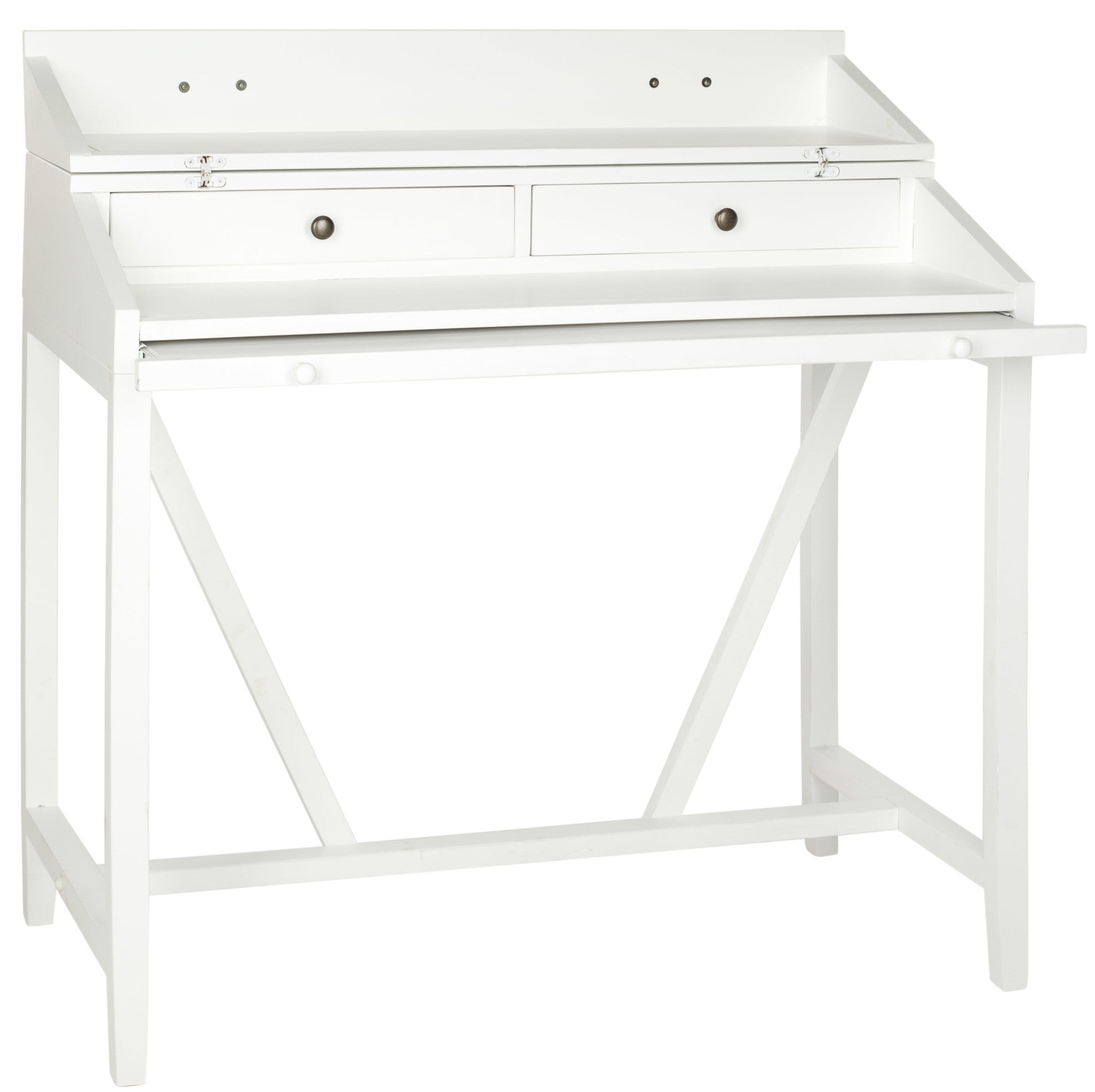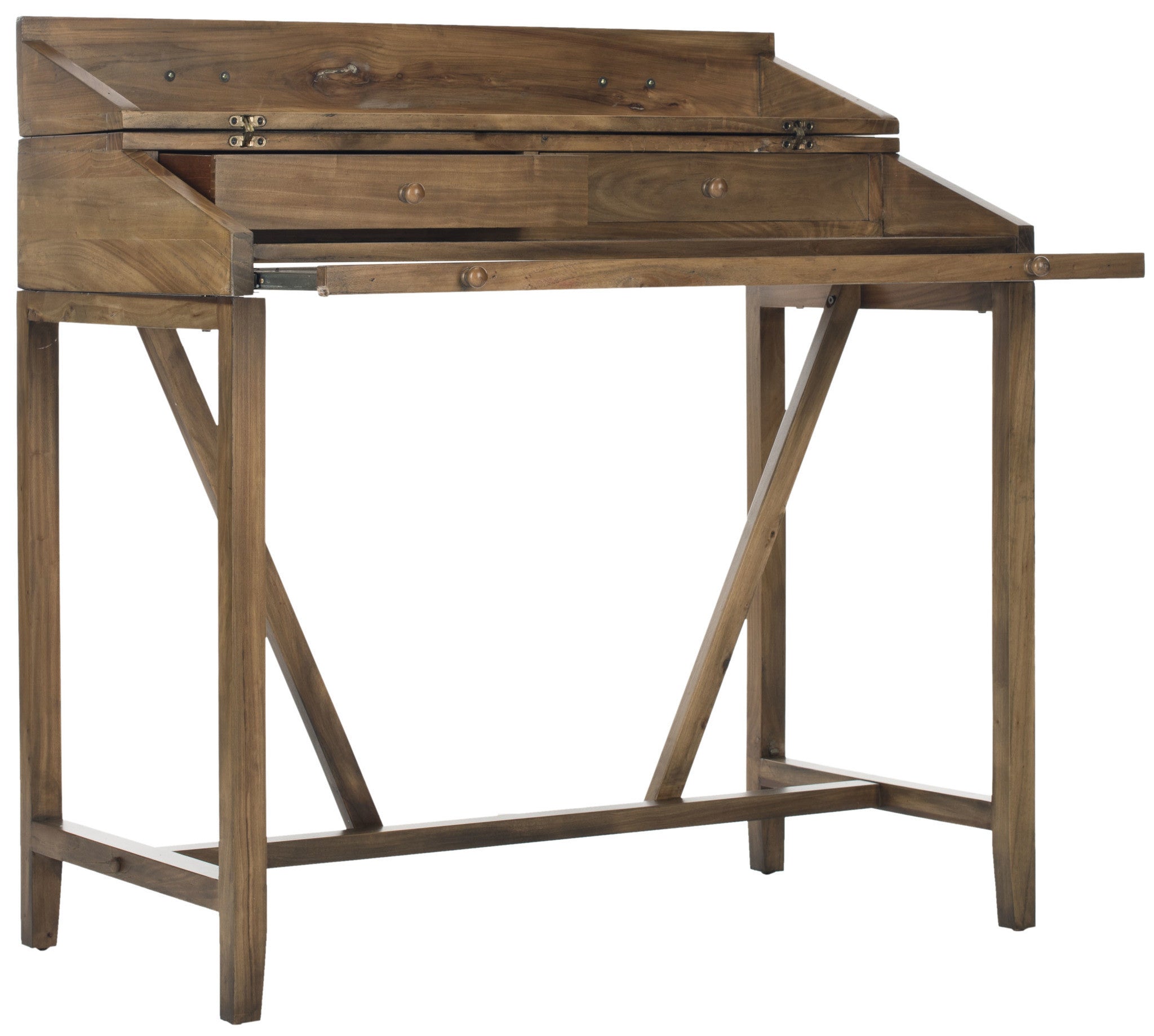 Simple styling is paired with functionality in the Wyatt writing desk. With a top that closes and a pull out writing table, this discreet forty-inch wide and twenty-two inch deep piece makes keeping up with the bills easy. Some assembly required.