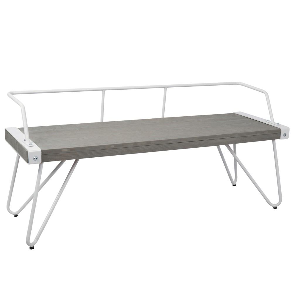 The innovative LumiSource Stefani bench features a wood seat supported by an antique or white metal frame featuring distinctive flared hairpin legs. Great for use as an entryway or dining/kitchen bench.