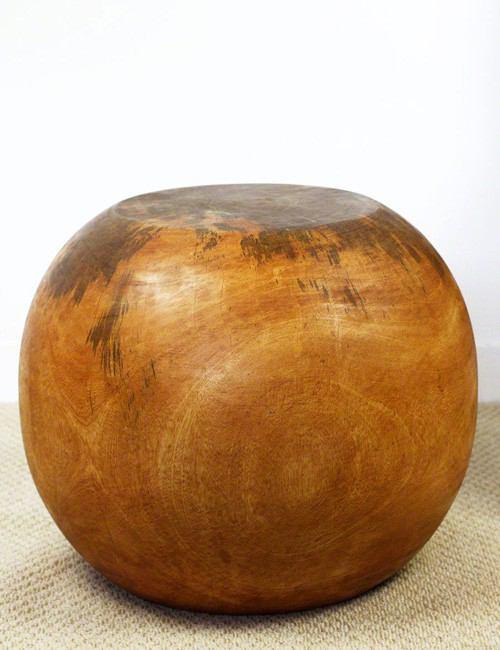 With their sustainable mango wood ball with eco friendly livos oak oil finish, you can welcome the exotic into your home and revel in the harmony of two cultures blending into one. The mango ball end table, made of sustainable wood from the mango fruit tree, will create an eclectic splash. Its smoothly rounded shape, hollow interior and flat surfaces serve a very practical purpose. It™s rare to find mango wood of this diameter, so grab one while you can. These functional works of handmade art are designed as end tables for use stand alone or in groups. They can also serve as a temporary party stool, serving table, or bench when put together. Carved from a single piece of Mango wood, these are easily moved around for use in any situation; they are appealing to the viewer from any angle. Hand finished with eco friendly livos oak oil, there is no oily feel, and cannot bleed into carpets.