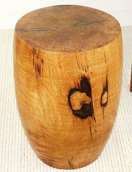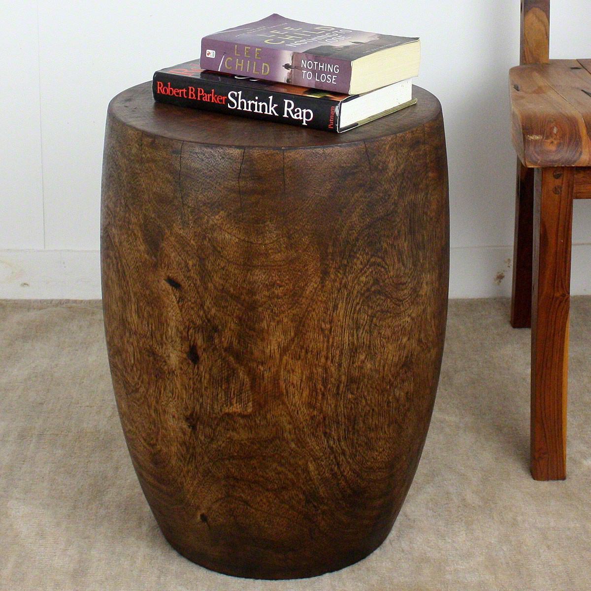 Our sustainable Merlot Mango Wood End Table, Stool or Stand 14-inch Diameter Top x 15-inch Diameter Body x 11-inch Diameter Base x 20 inch Height with Eco-Friendly, Natural Food-Safe Livos Oil. Available in Oak or Mocha Oil Finish.