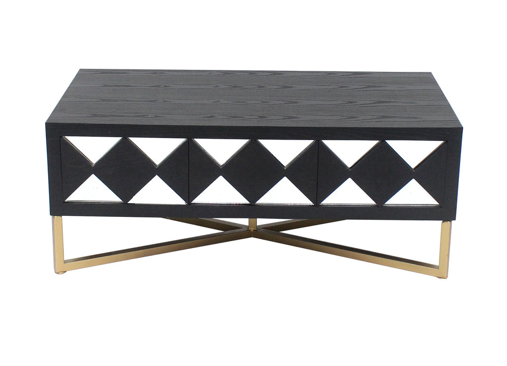 Mixing a classic design with eye-catching diamond-shaped mirror drawer front, slim gold metal base and minimal profiles, this console table creates conversation in your space. Streamlined storage blends into the overall aesthetic. It is nice to place this accent piece for a dramatic statement in front of a couch or at the focal point of a living room wall. The tabletop has a bark finish to embody natural wooden texture.