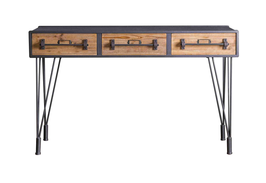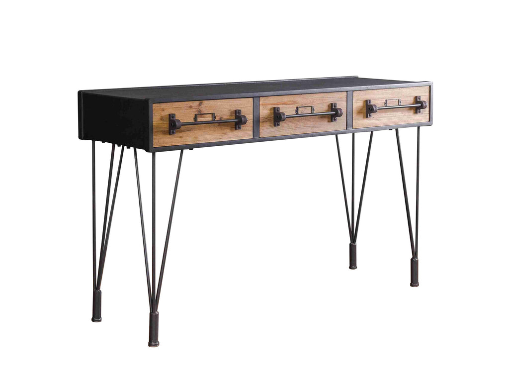 With antiqued dark gray fa§ade and solid wood drawer texture, Teton Home AF-120 Iron Console Table offers a wonderful amalgamation of industrial-style leisure and nature. Slight rough touch featured tabletop is elegantly supported by an iron leg frame also in dark gray finish. Vintage, classic and industrial inspired style and the crude wooden texture instantly transform your room an accent decor, and the three drawers give you enough space for storage to keep your tabletop more organized. This durable table is the perfect addition to homes, dorms and offices alike.