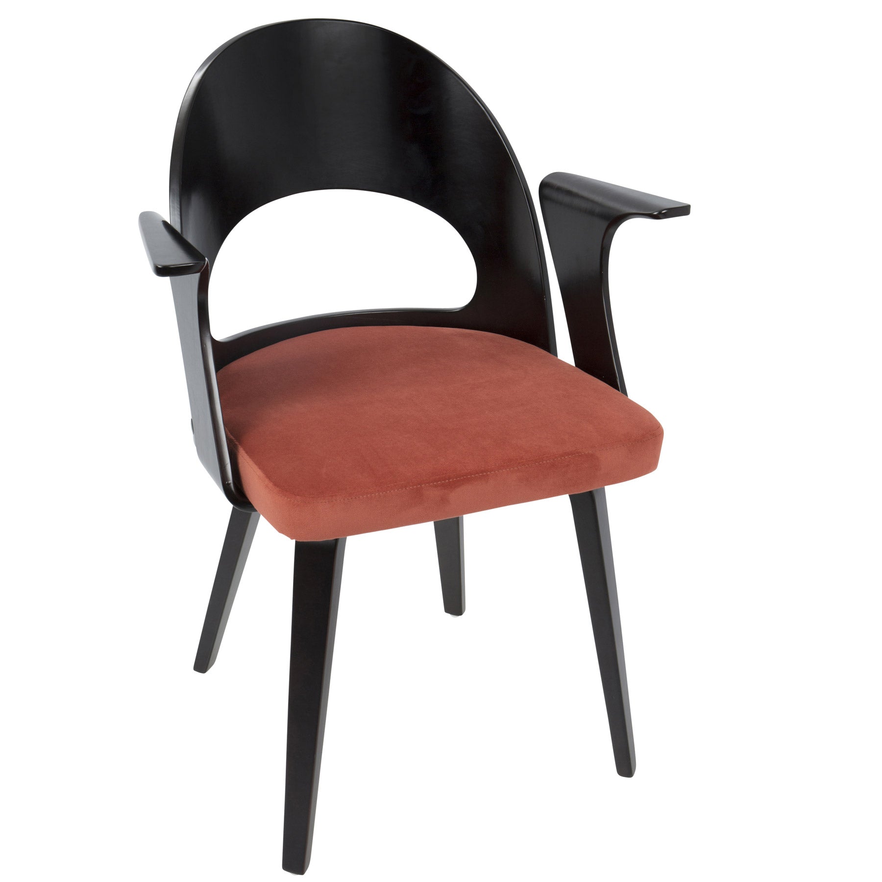 Invigorate your dining room with the Mid-Century style of the Vernino dining chair. With a unique open wood backrest, upholstered padded seat and wooden armrests for comfort, the Vernino dining chair can double as accent seating or a stylish a office chair. Available in a variety of colors, choose the one that fits your space the best.