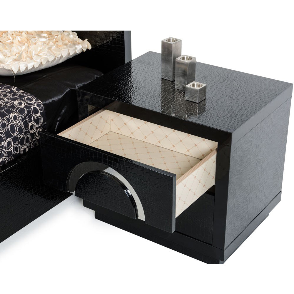 A&X Ovidius Modern Black Crocodile Nightstand
