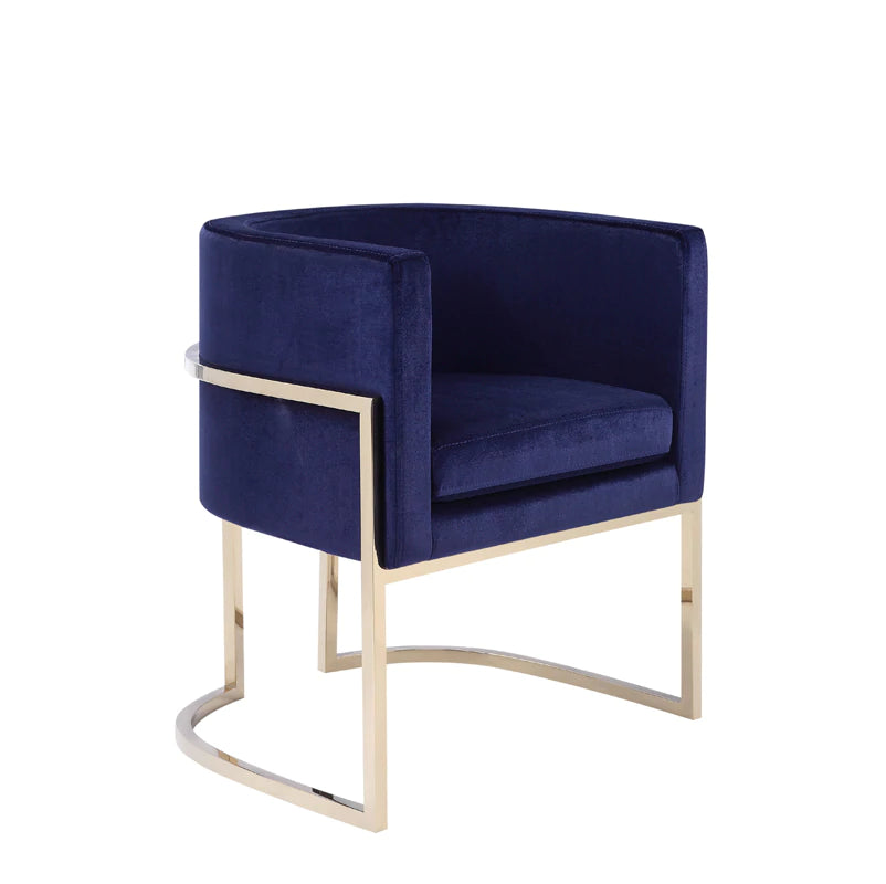 Modrest Betsy Modern Blue/Navy Blue/Pink Velvet & Gold Dining Chair
