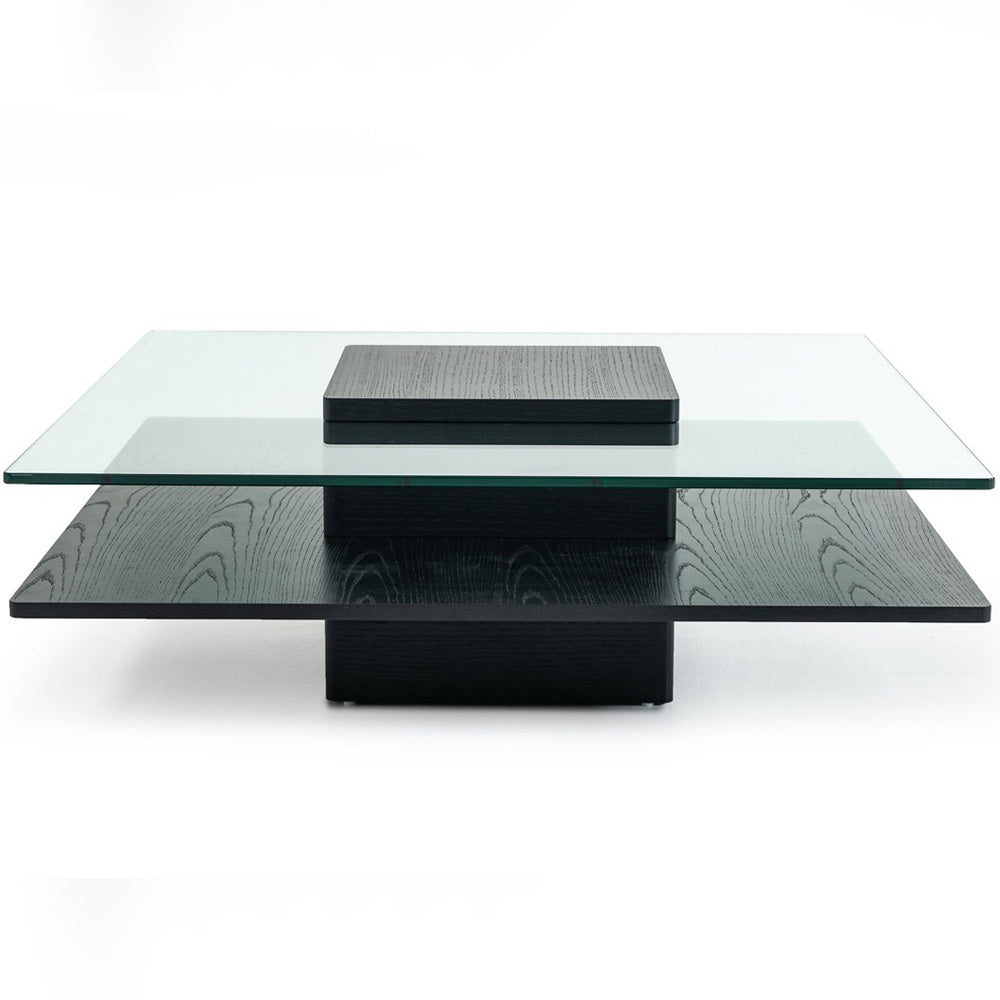 Vig Furniture Modrest Emulsion - Modern Black Oak Glass Coffee Table