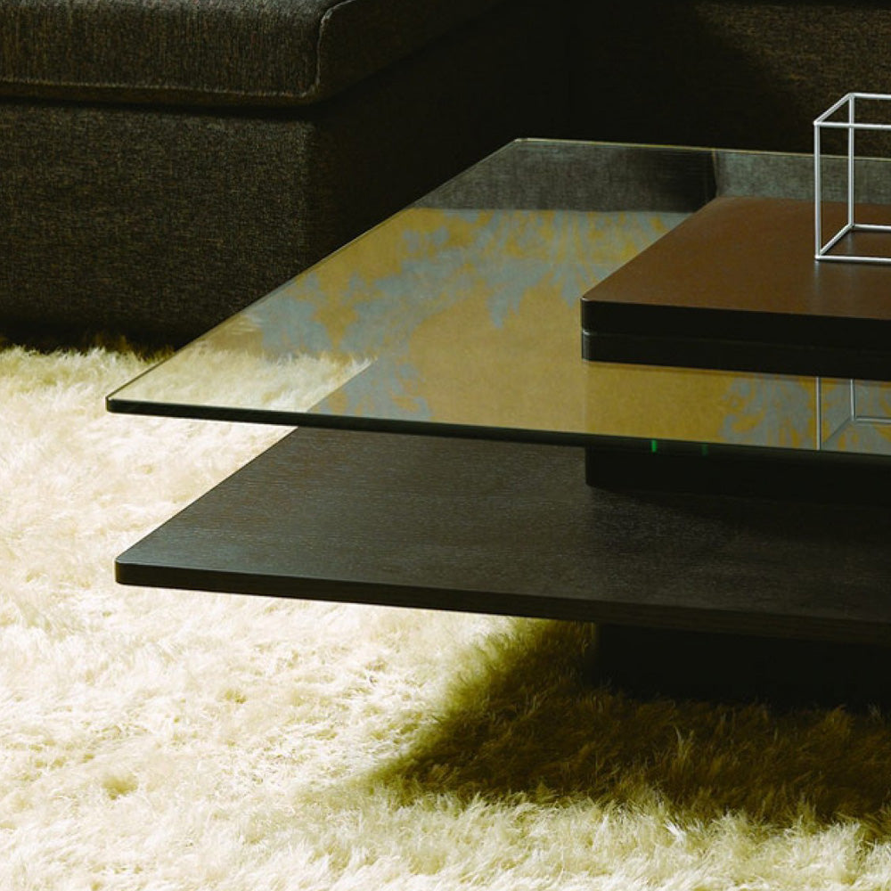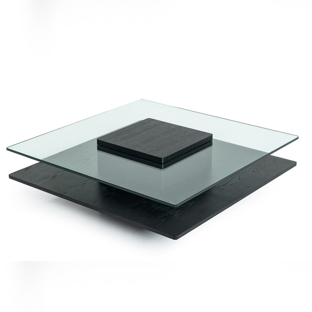 Designed with two tiers, one of transparent glass and the base in black oak, the Emulsion black oak coffee table emulates the separation of elements. This clean contemporary design provides storage space between the tiers. Also available in white gloss.