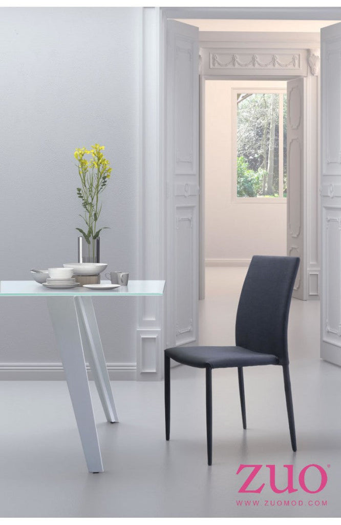 Confidence dining chair features a fully upholstered design from slim yet sturdy legs to plush seat and low back in black poly-blend fabric. Perfect for home or restaurant installations for a simple yet confident design statement.